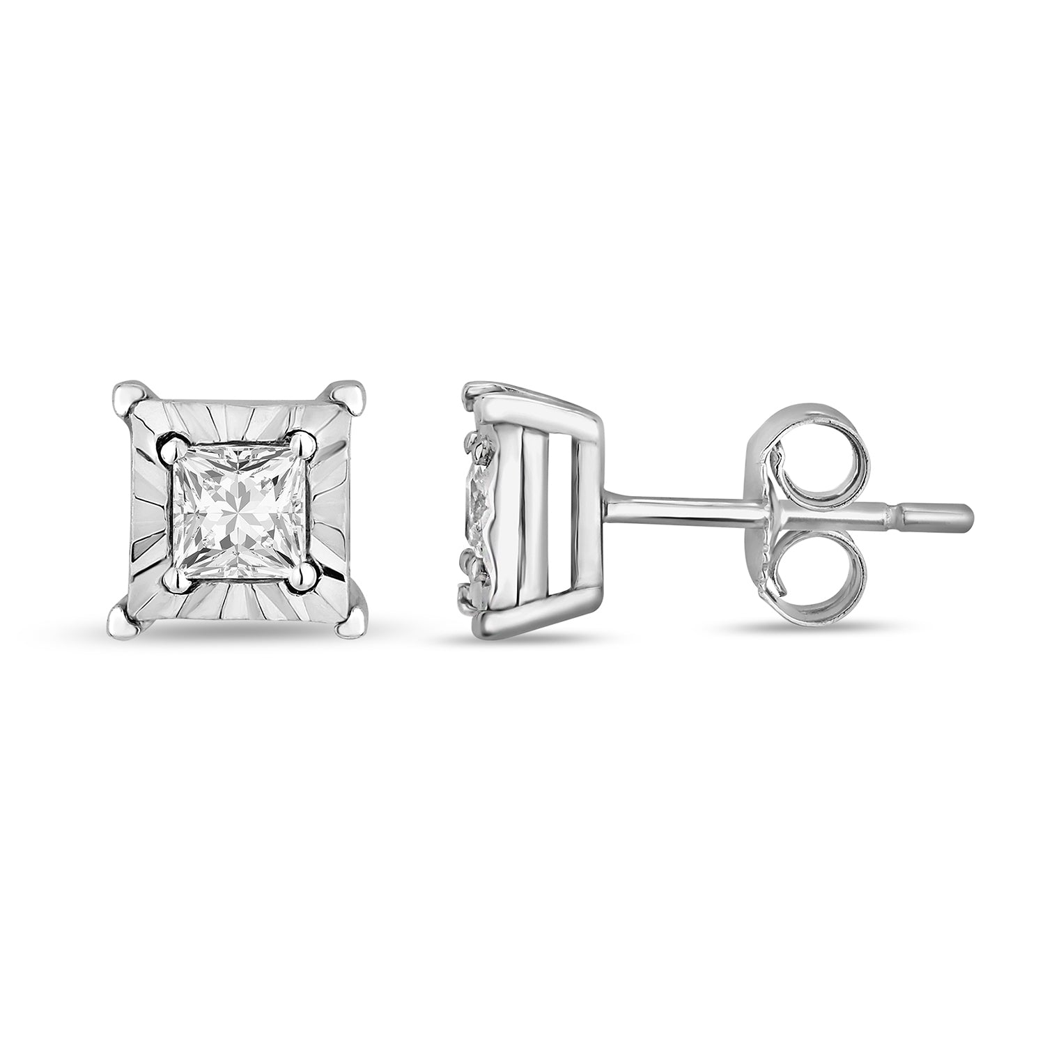 Jewelili 10K White Gold With 1/2 CTTW Diamonds Stud Earrings