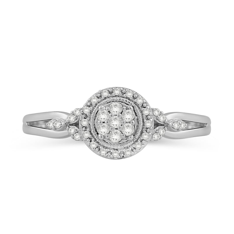 Jewelili 10K White Gold 1/4 CTTW Natural White Round Diamonds Ring