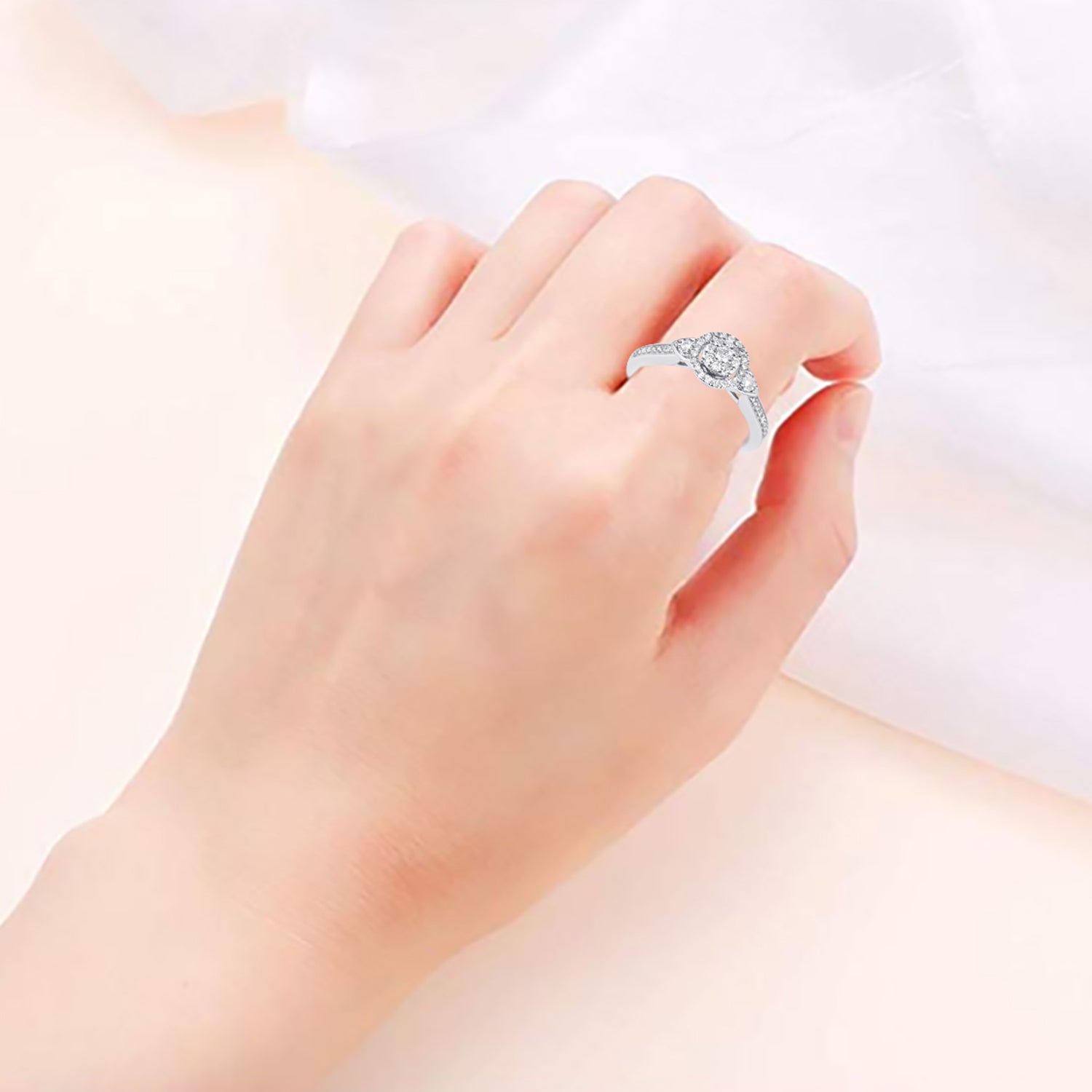 • Load image into Gallery viewer, Jewelili Ring with Natural White Round Diamonds in 10K White Gold 1/4 CTTW View 5
