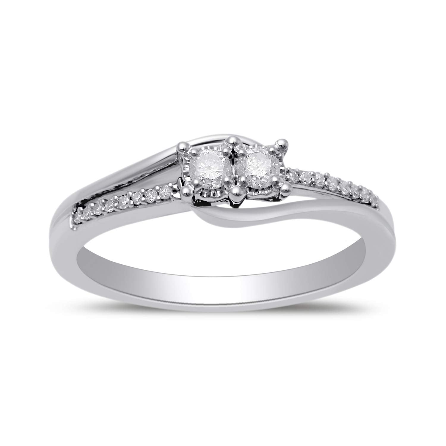 Jewelili 10K White Gold With 1/5 CTTW Natural White Round Diamonds Ring