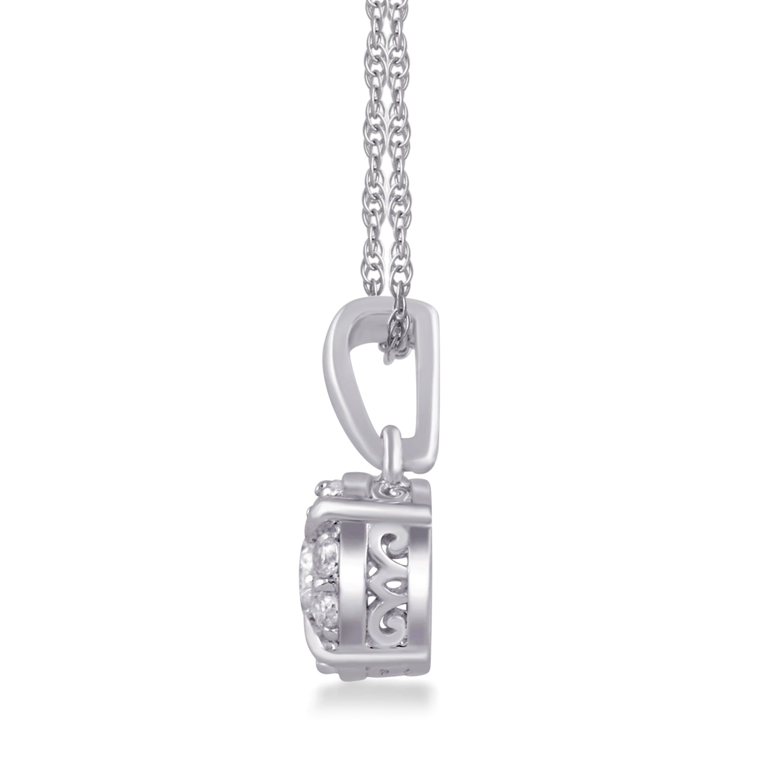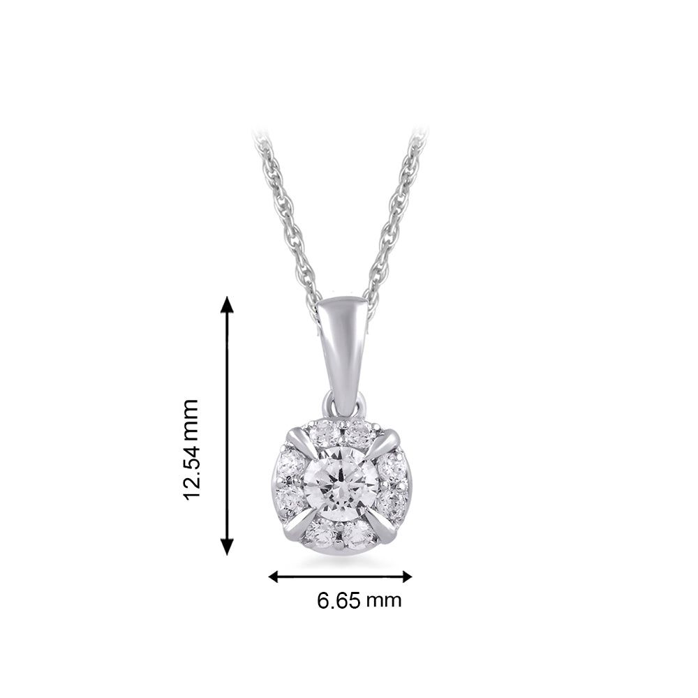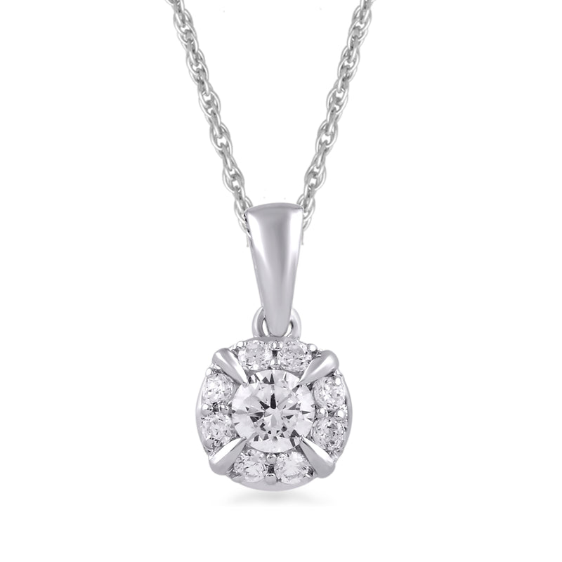 Jewelili 10K White Gold With 1/3 CTTW White Round Diamonds Pendant Necklace