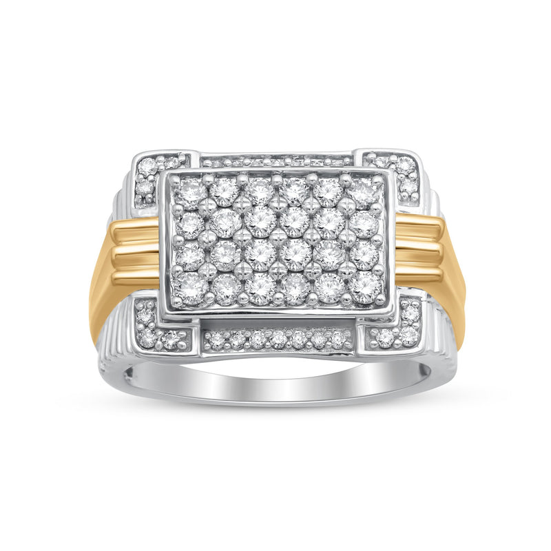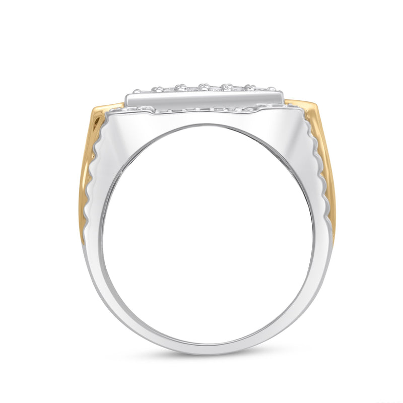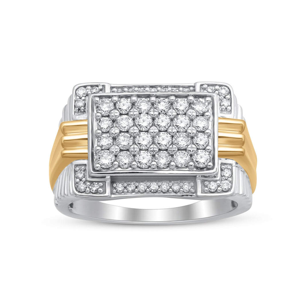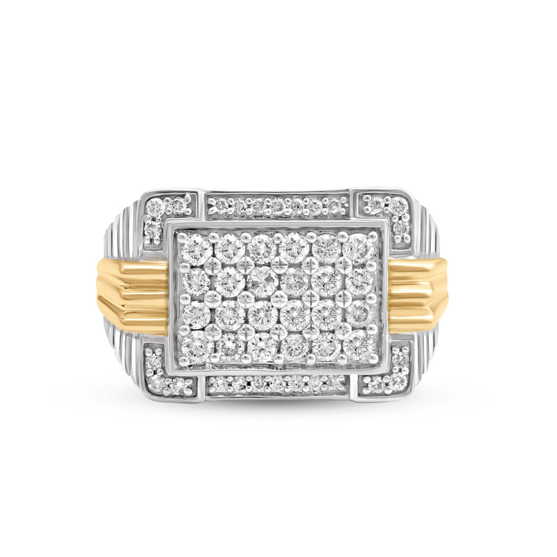 • 10K Yellow and White Gold With 1.00 Cttw Natural White Round Diamond Men's Ring