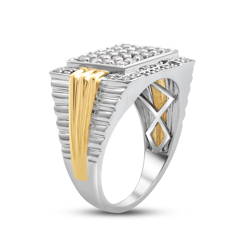 Jewelili 10K Yellow and White Gold With 1.00 CTTW Natural White Round Diamonds Men's Ring