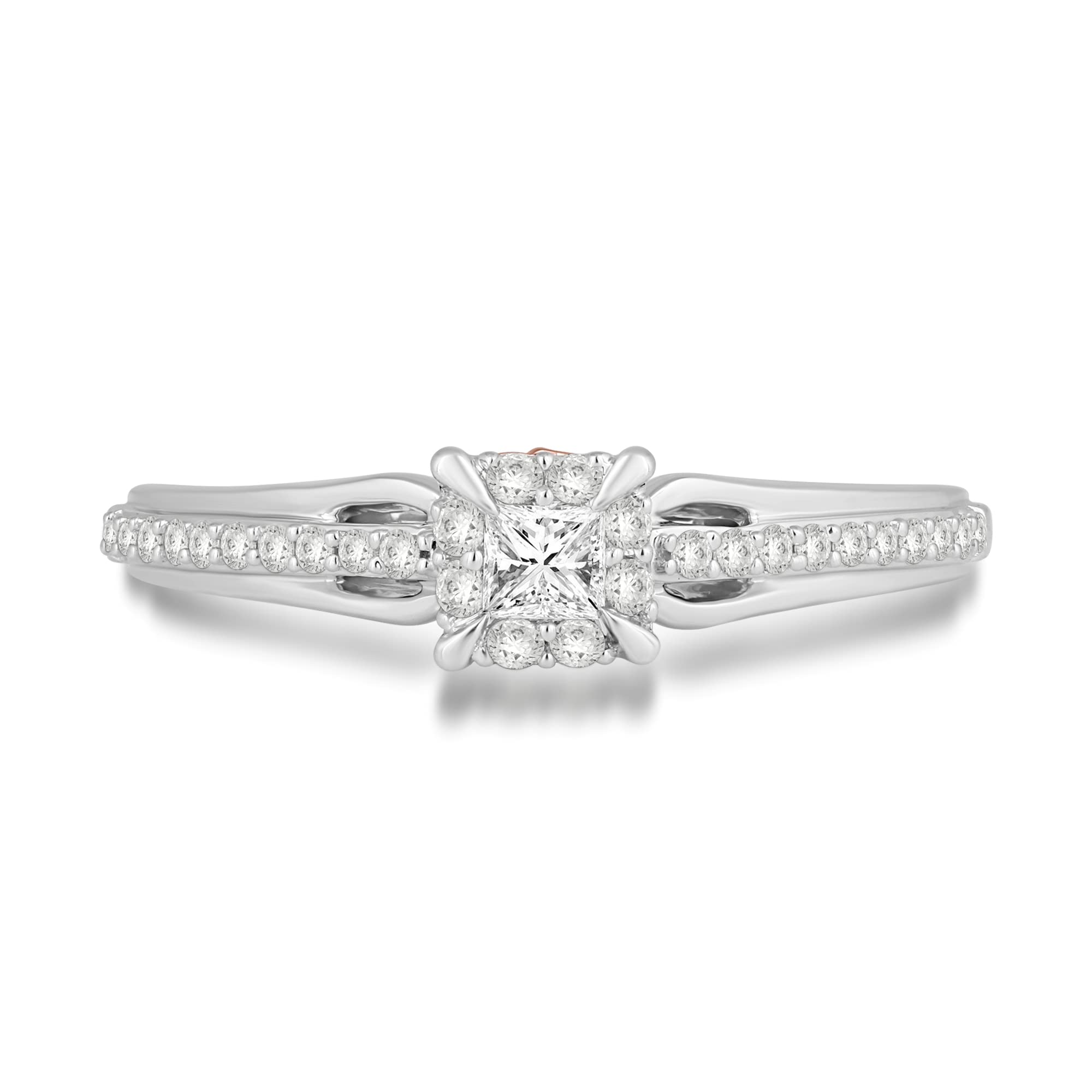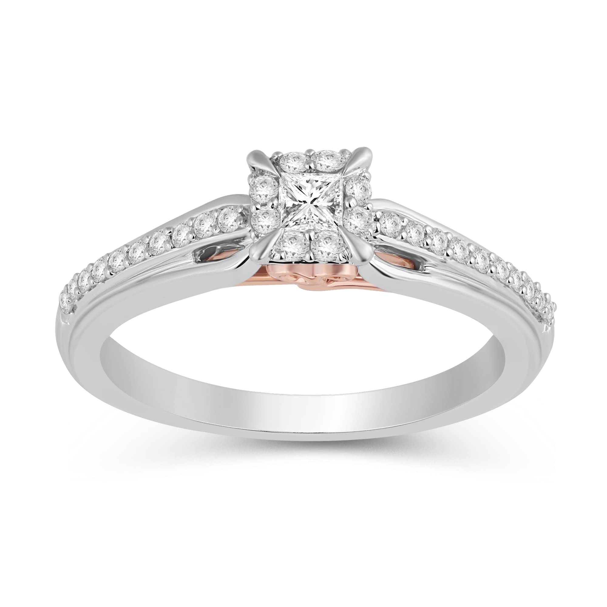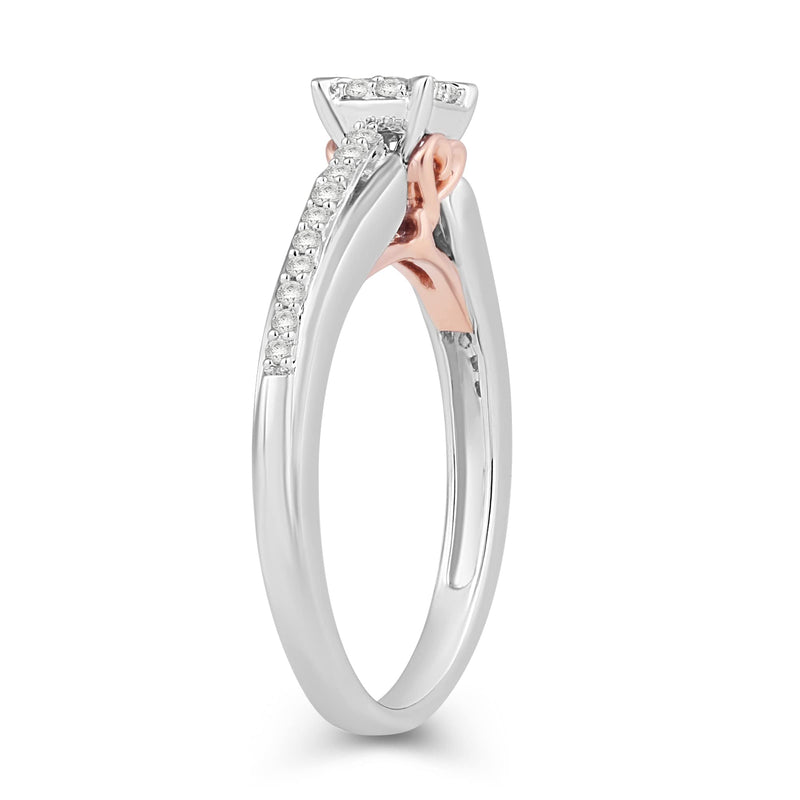 Jewelili 10K White Gold and Rose Gold With 1/3 CTTW White Diamonds Engagement Ring