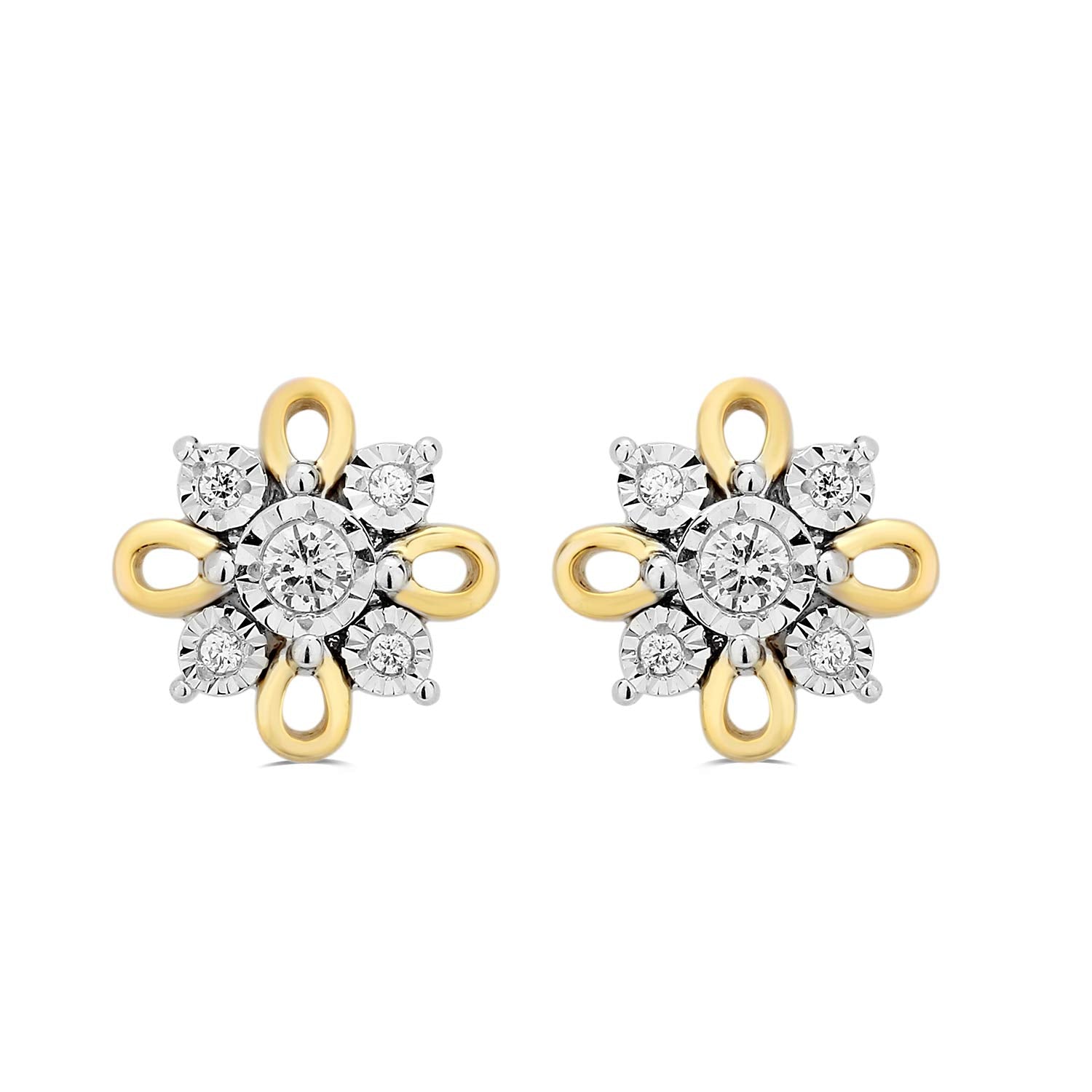 Jewelili 10K White Gold and Yellow Gold with 1/10 CTTW Diamonds Earrings