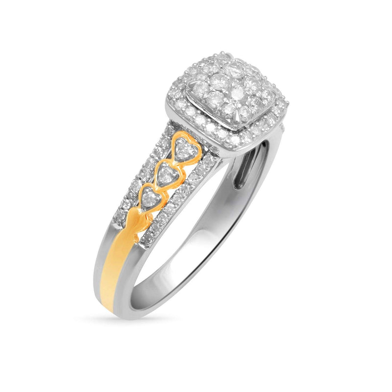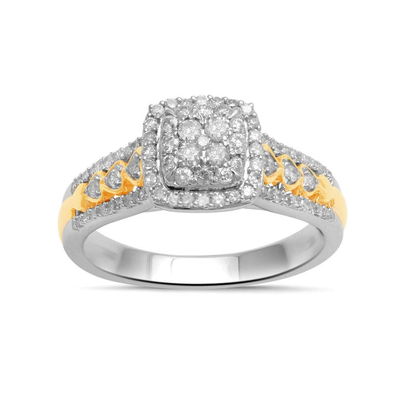 Jewelili 10K White Gold and Yellow Gold With 1/2 CTTW Natural White Diamonds Bridal Ring
