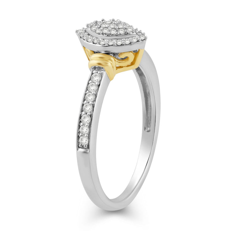 Jewelili 10K White Gold and Yellow Gold With 1/4 CTTW Natural White Diamonds Engagement Ring