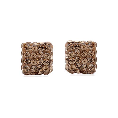 Jewelili 10K White Gold Brown Cubic Zirconia Crystal Earrings