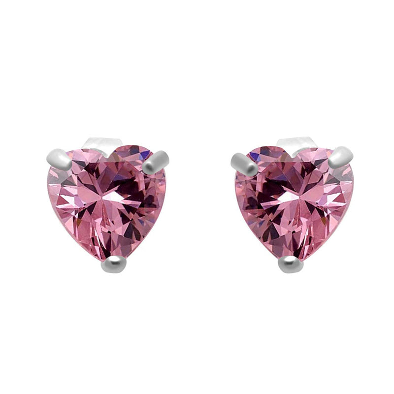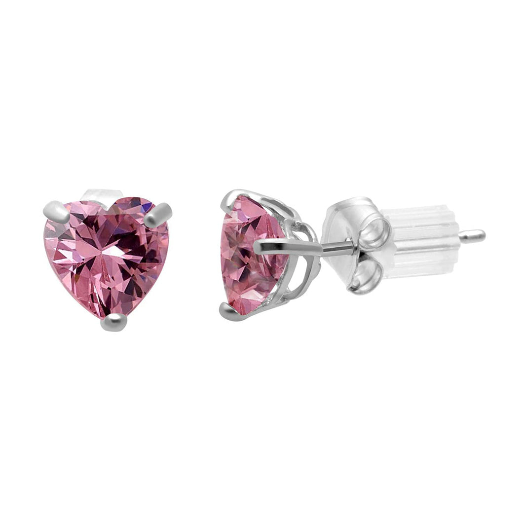 • Stud Earrings in 10K White Gold with Heart Shape Pink Cubic Zirconia