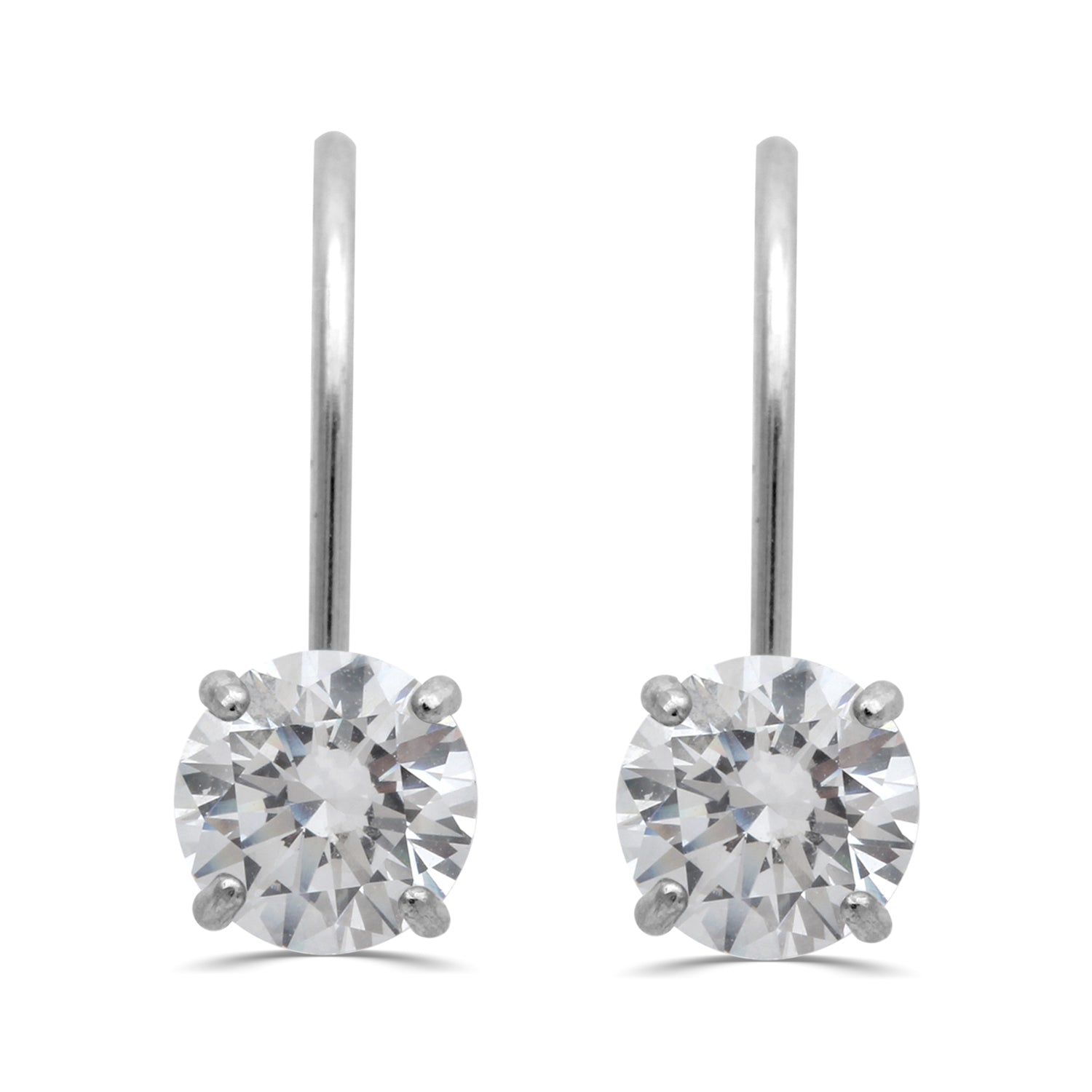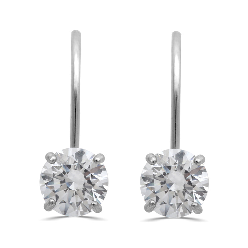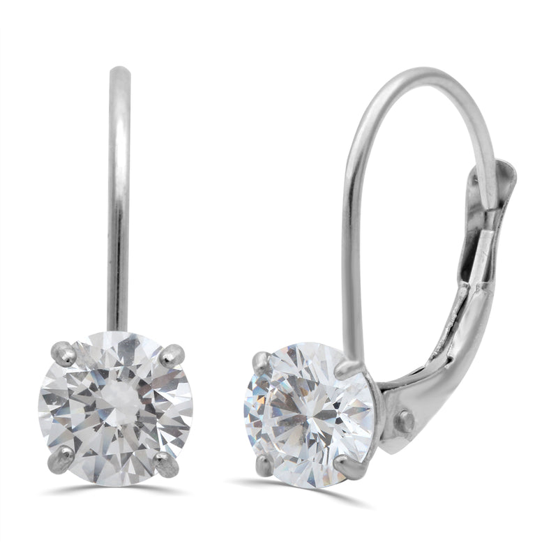 • 10K White Gold Round White Cubic Zirconia Dangle Earrings