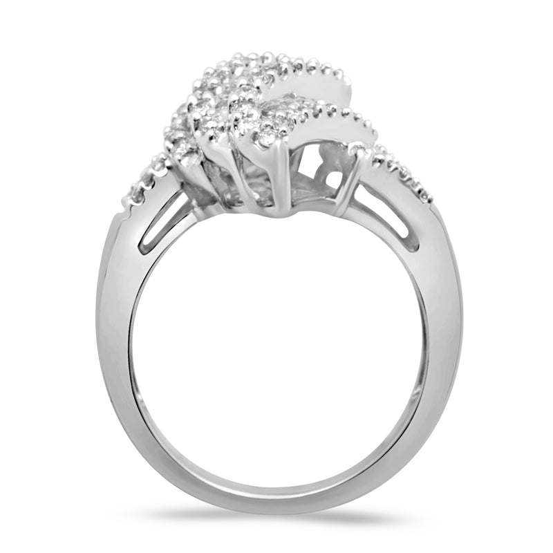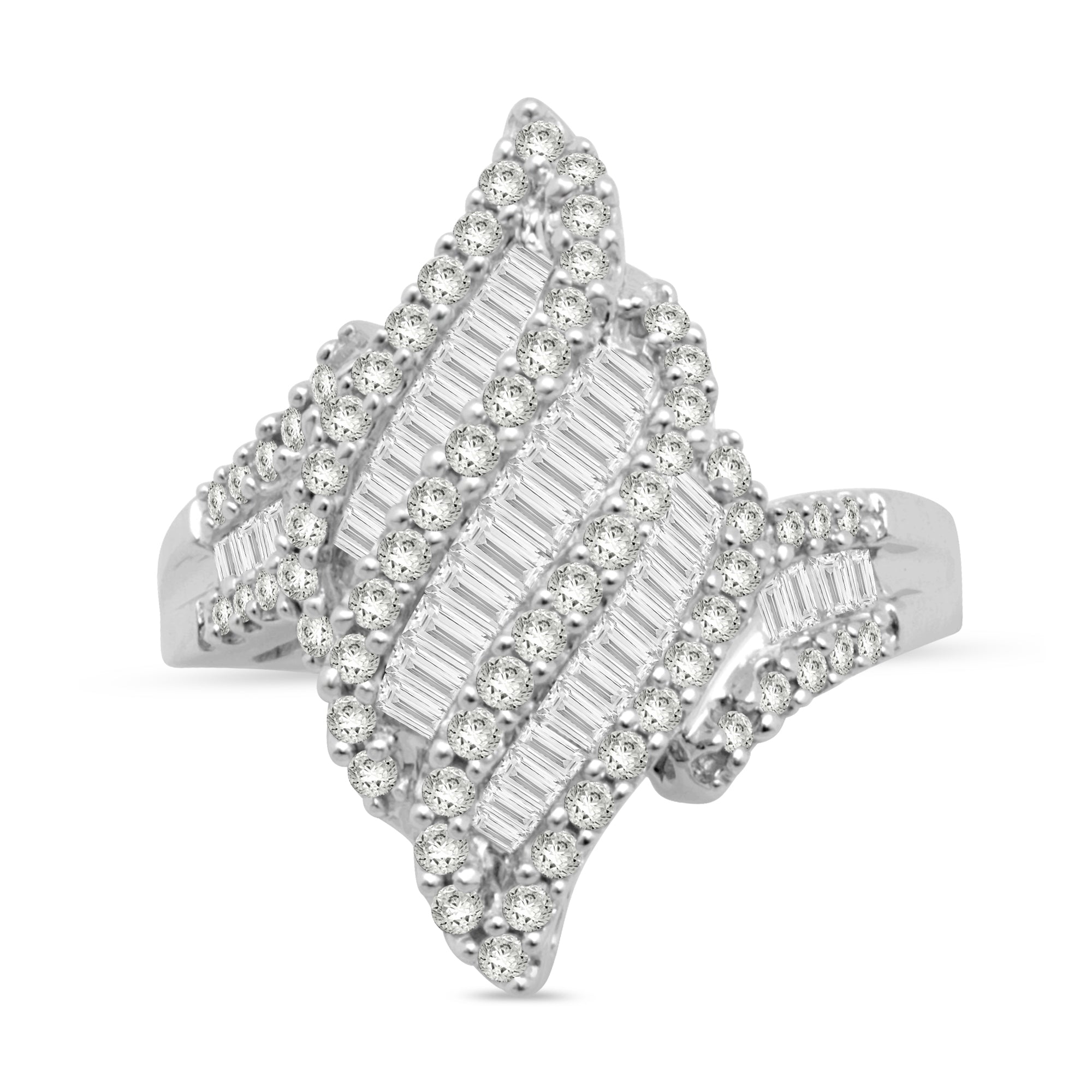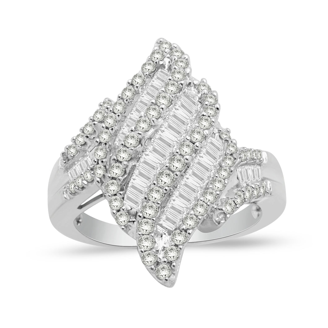 •  10K White Gold With 1.00 Cttw Baguette and Round Natural White Diamond Cluster Ring