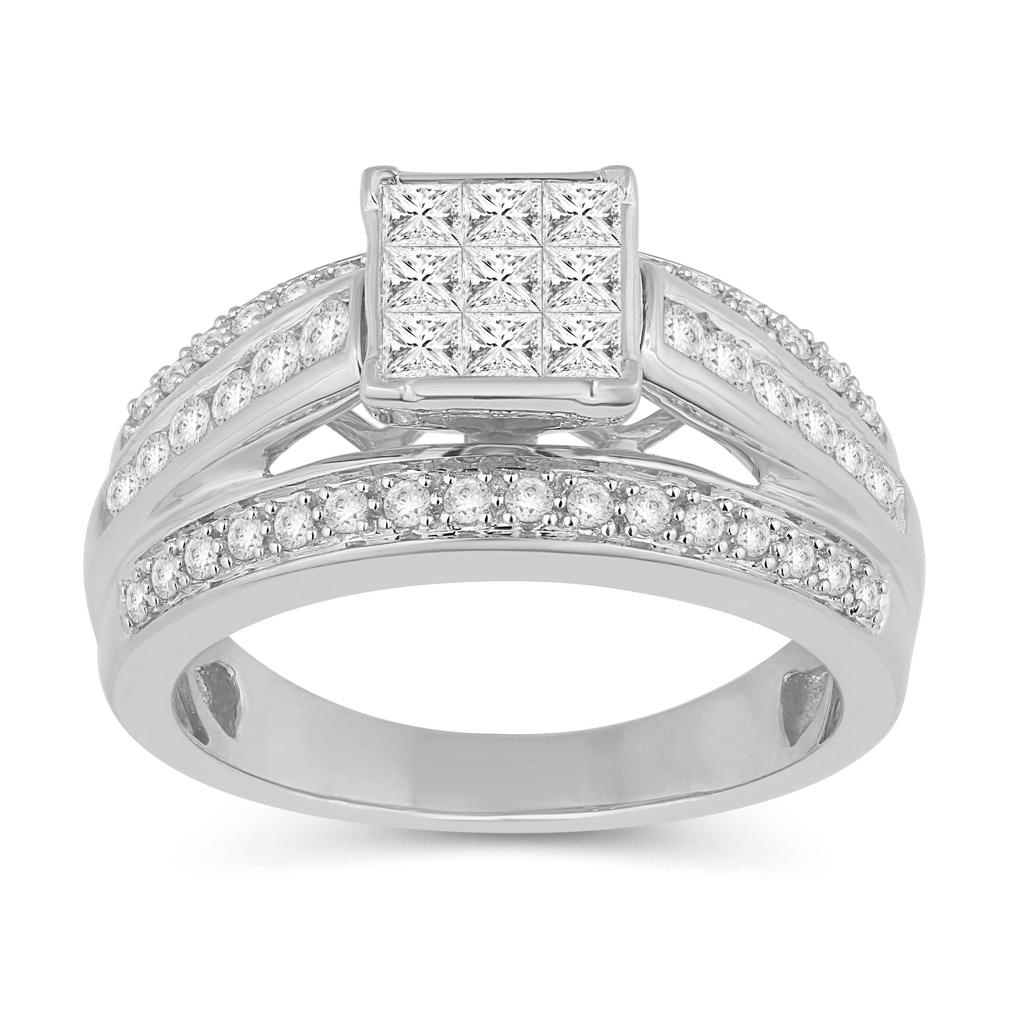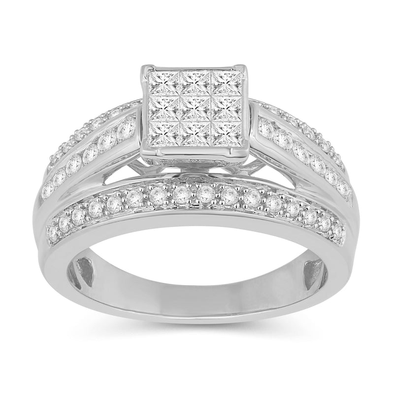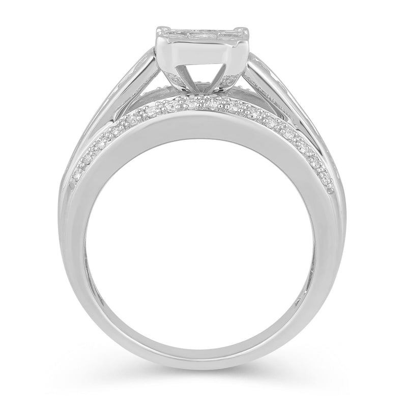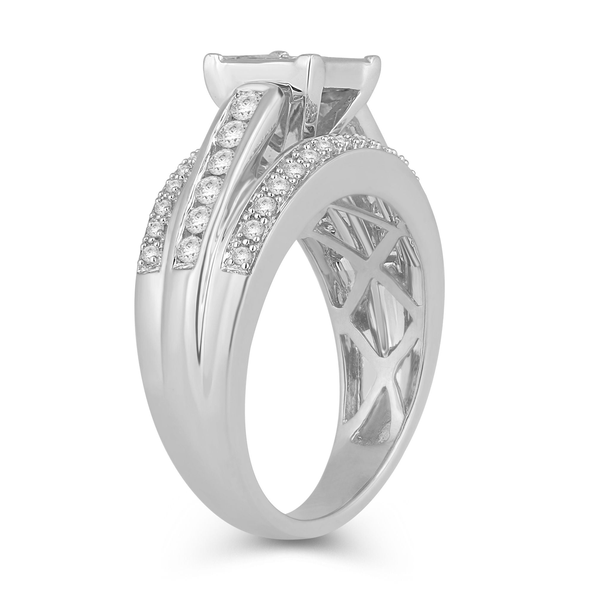 Jewelili 10K White Gold With 1.00 CTTW Natural White Diamonds Engagement Ring