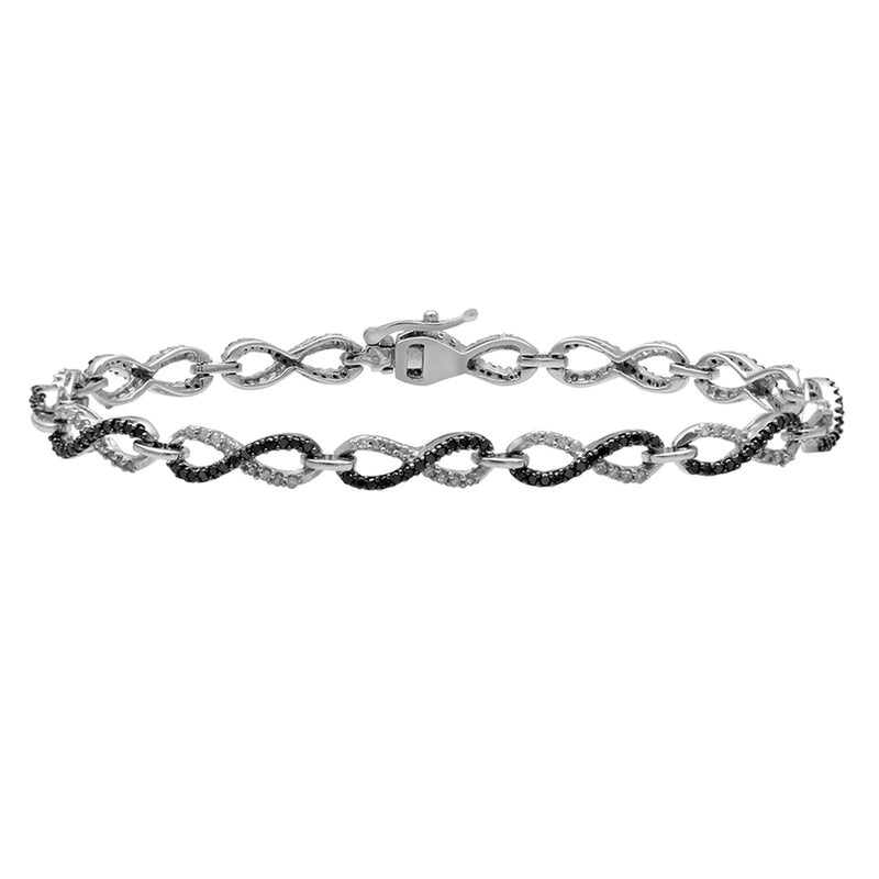 Jewelili 10K White Gold with 1.00 CTTW Treated Black Diamonds and White Diamonds Infinity Bracelet, 7.25"