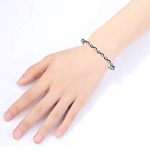 • Load image into Gallery viewer, Jewelili Infinity Bracelet with Treated Black Diamonds and White Diamonds in 10K White Gold 1.00 CTTW 7.25"