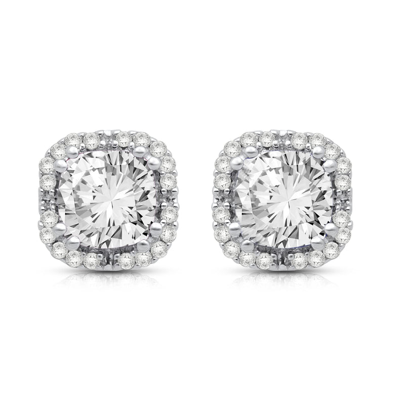 • 10K White Gold with 1/10 Cttw Round Natural Diamonds and Cushion Cut White Topaz Stud Earrings