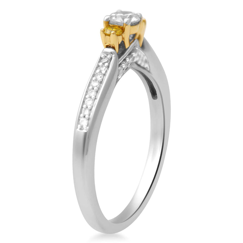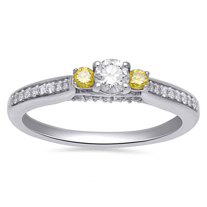 • 10K White Gold with 1/2 Cttw White Diamonds and Treated Yellow Diamonds Ring