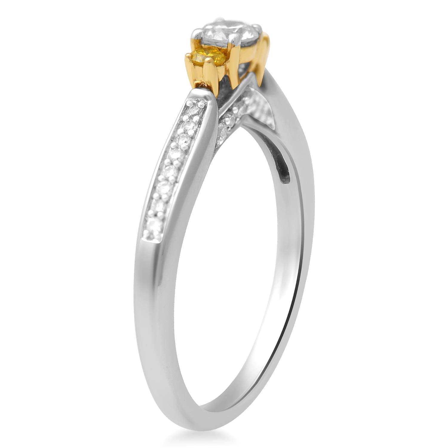 Jewelili 10K White Gold with 1/2 CTTW White Diamonds and Treated Yellow Diamonds Ring