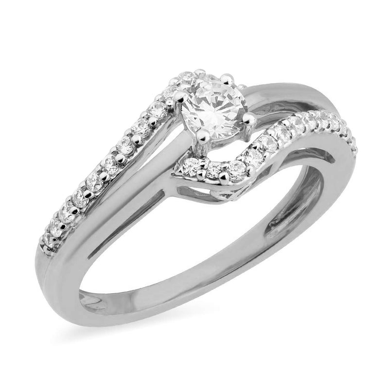 Jewelili 10K White Gold With 1/2 CTTW Diamonds Engagement Ring