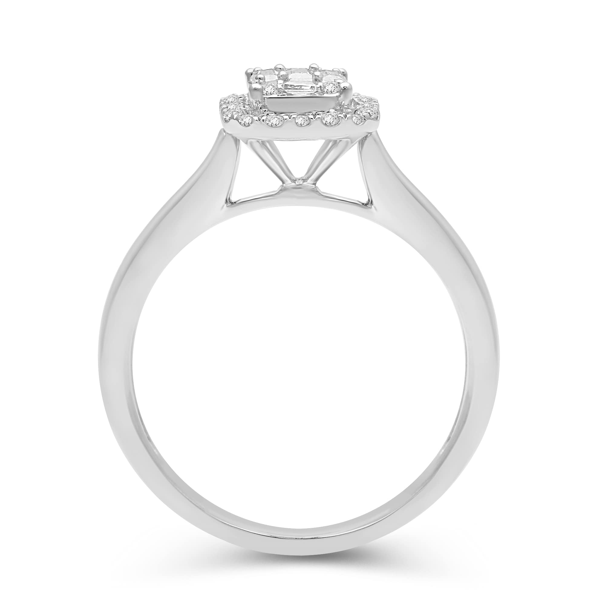 Details: 10K White Gold With 1/3 Cttw Baguette and Round Diamonds Bridal Set