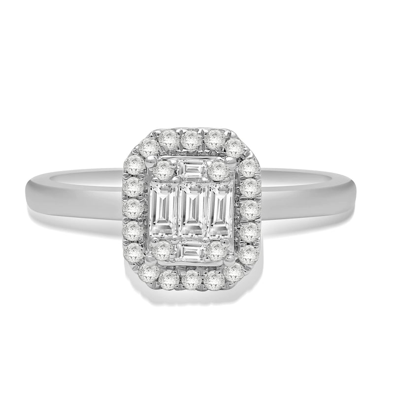 • 10K White Gold With 1/3 Cttw Baguette and Round Diamonds Bridal Set