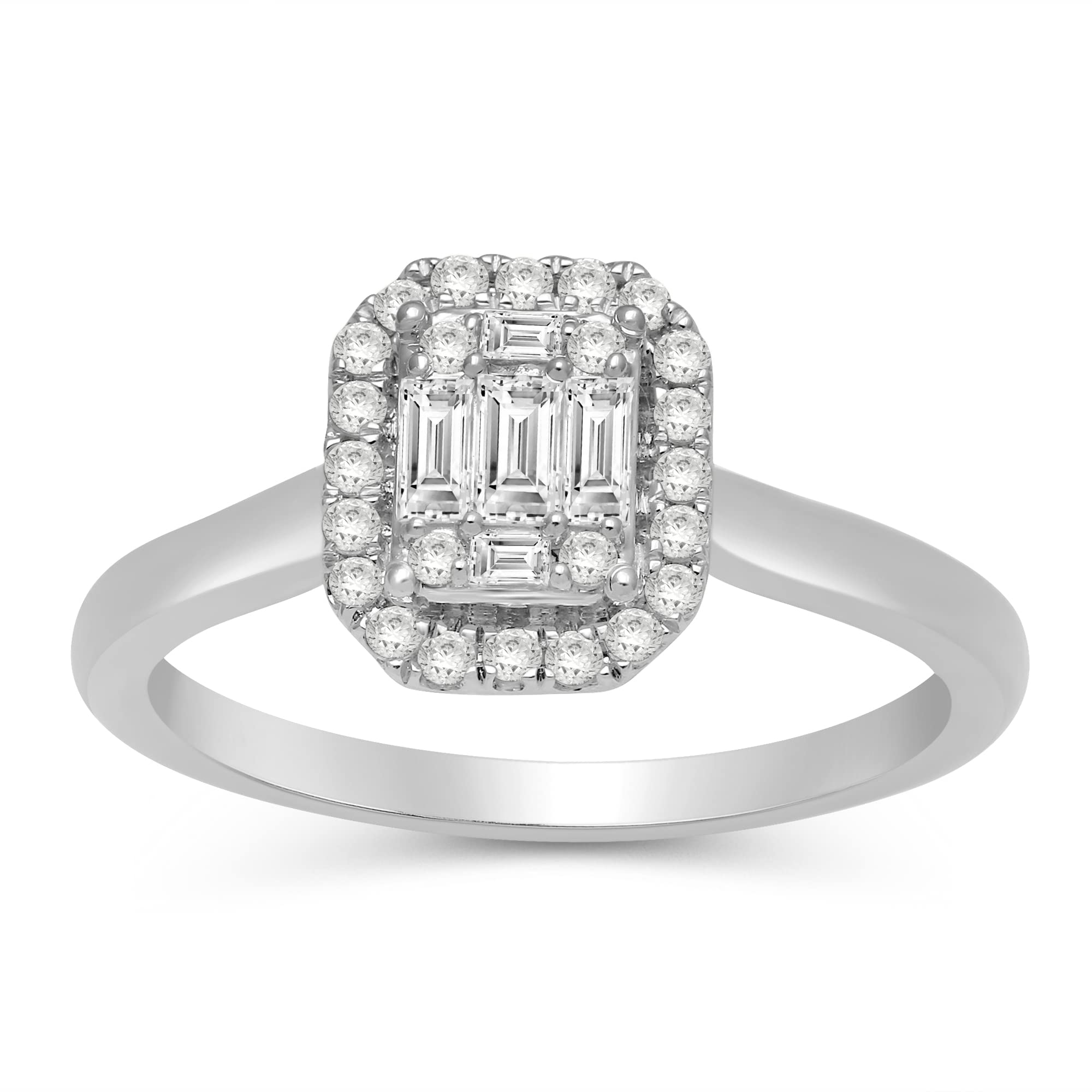 Jewelili 10K White Gold With 1/3 CTTW Baguette and Round Diamonds Bridal Set