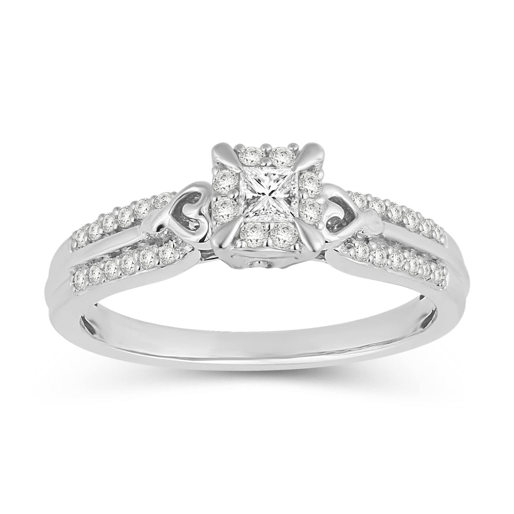 Jewelili 10K White Gold With 1/3 CTTW Diamonds Engagement Ring