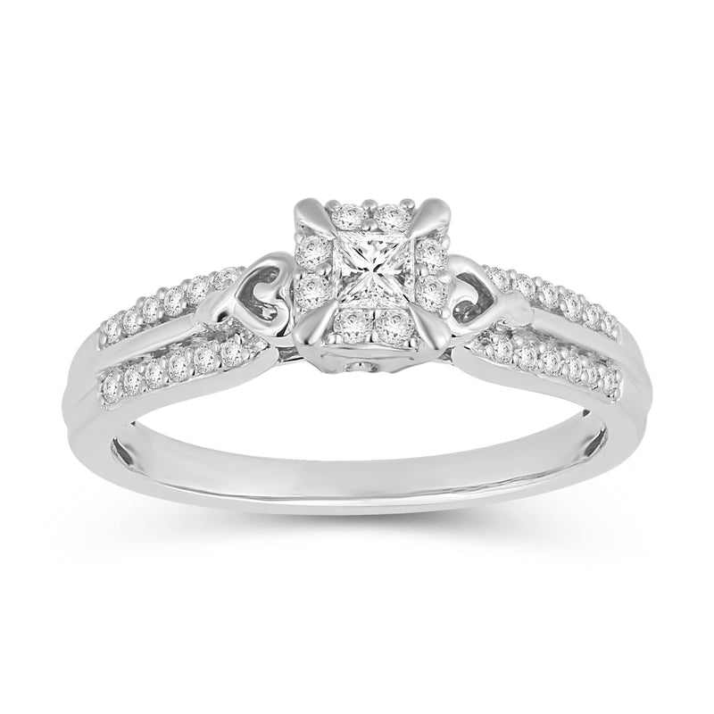 • Load image into Gallery viewer, Jewelili Engagement Ring with Diamonds in 10K White Gold 1/3 CTTW View 1