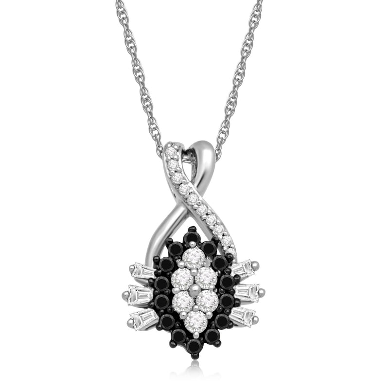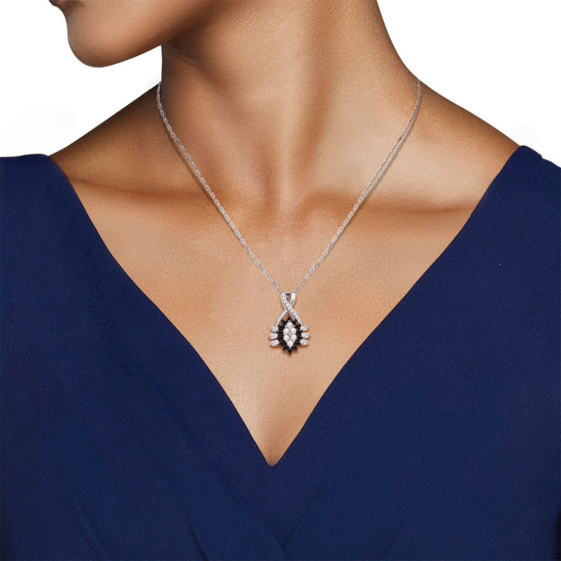 Jewelili 10K White Gold With 1/3 CTTW Treated Black and White Natural Diamond Cluster Pendant Necklace
