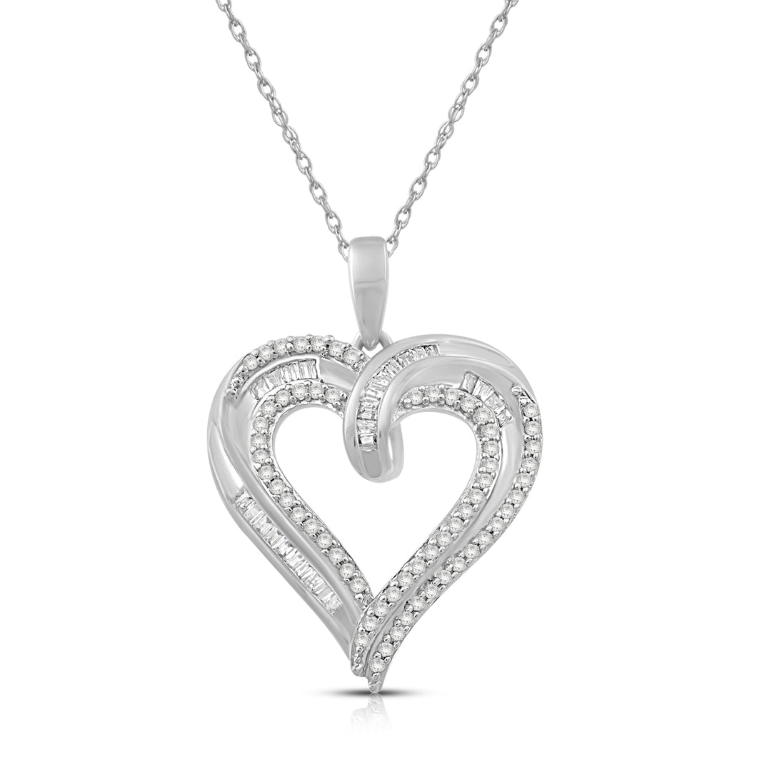 • 10K White Gold With 1/4 Cttw Natural Diamonds Heart Pendant Necklace