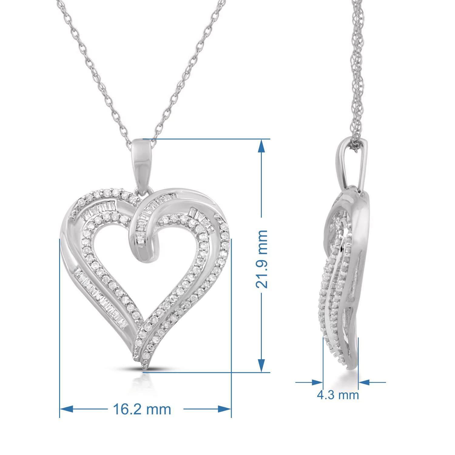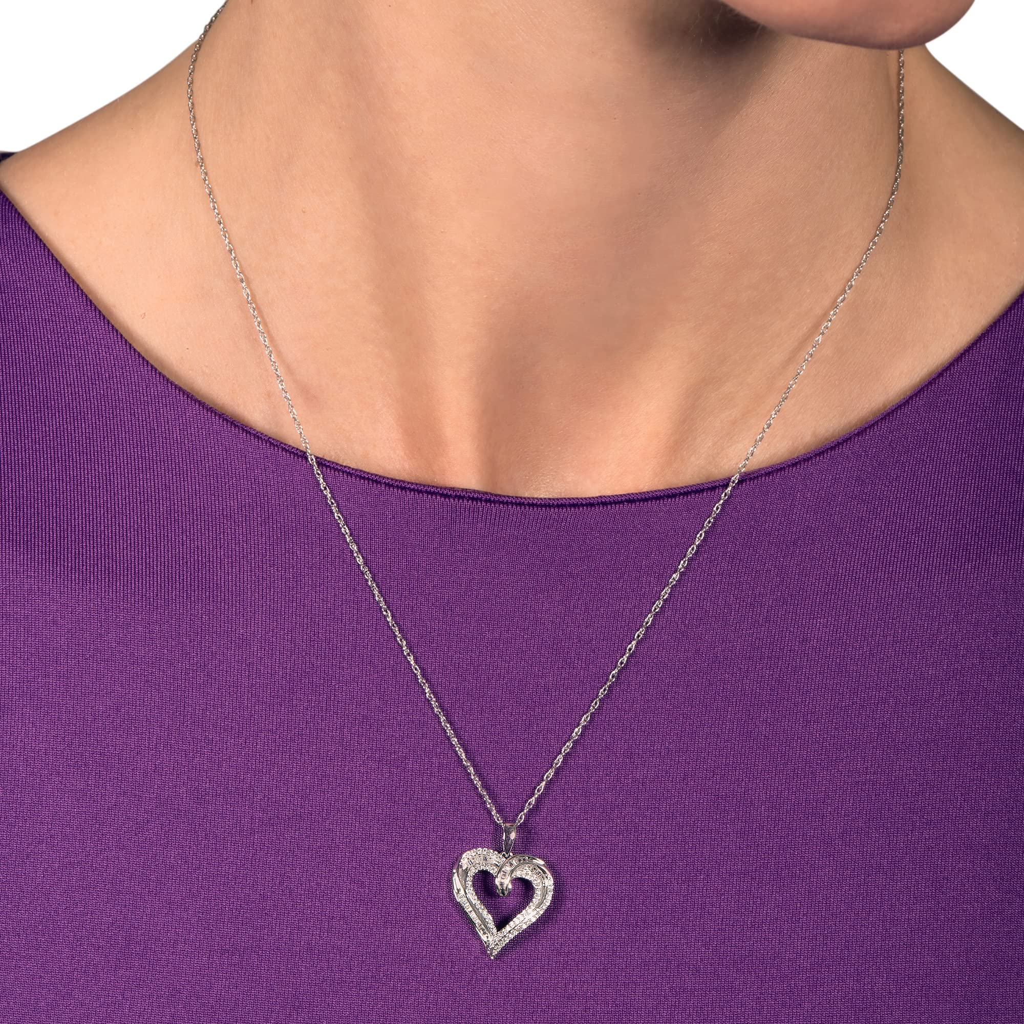 Jewelili 10K White Gold With 1/4 CTTW Natural Diamonds Heart Pendant Necklace