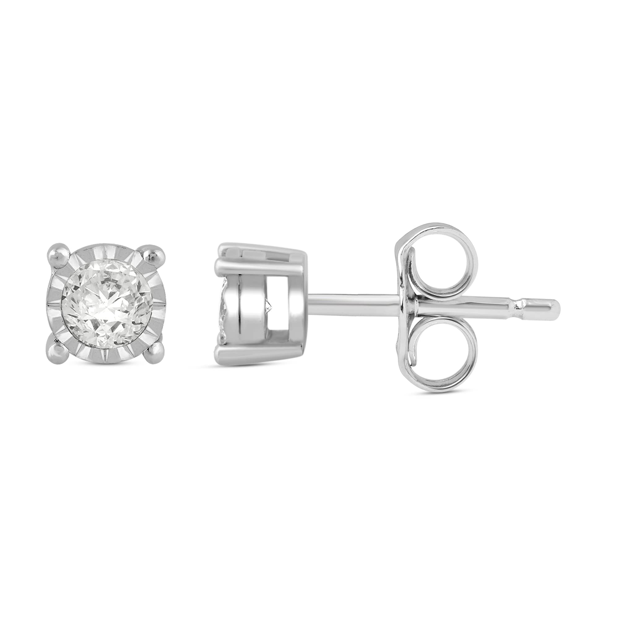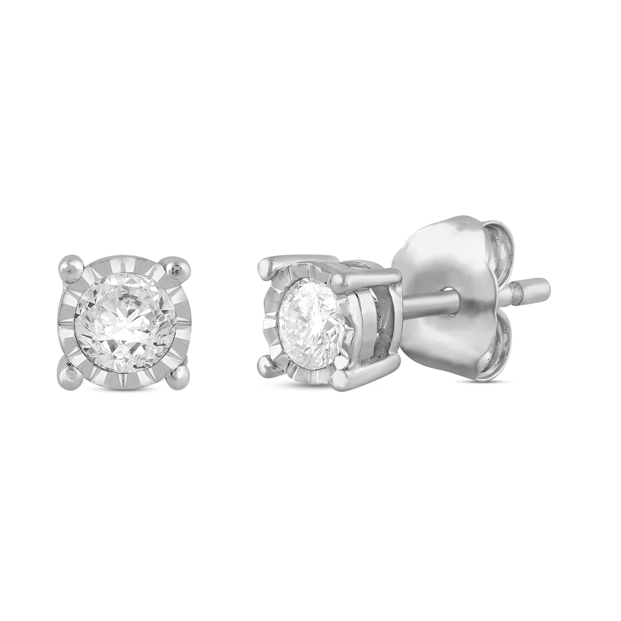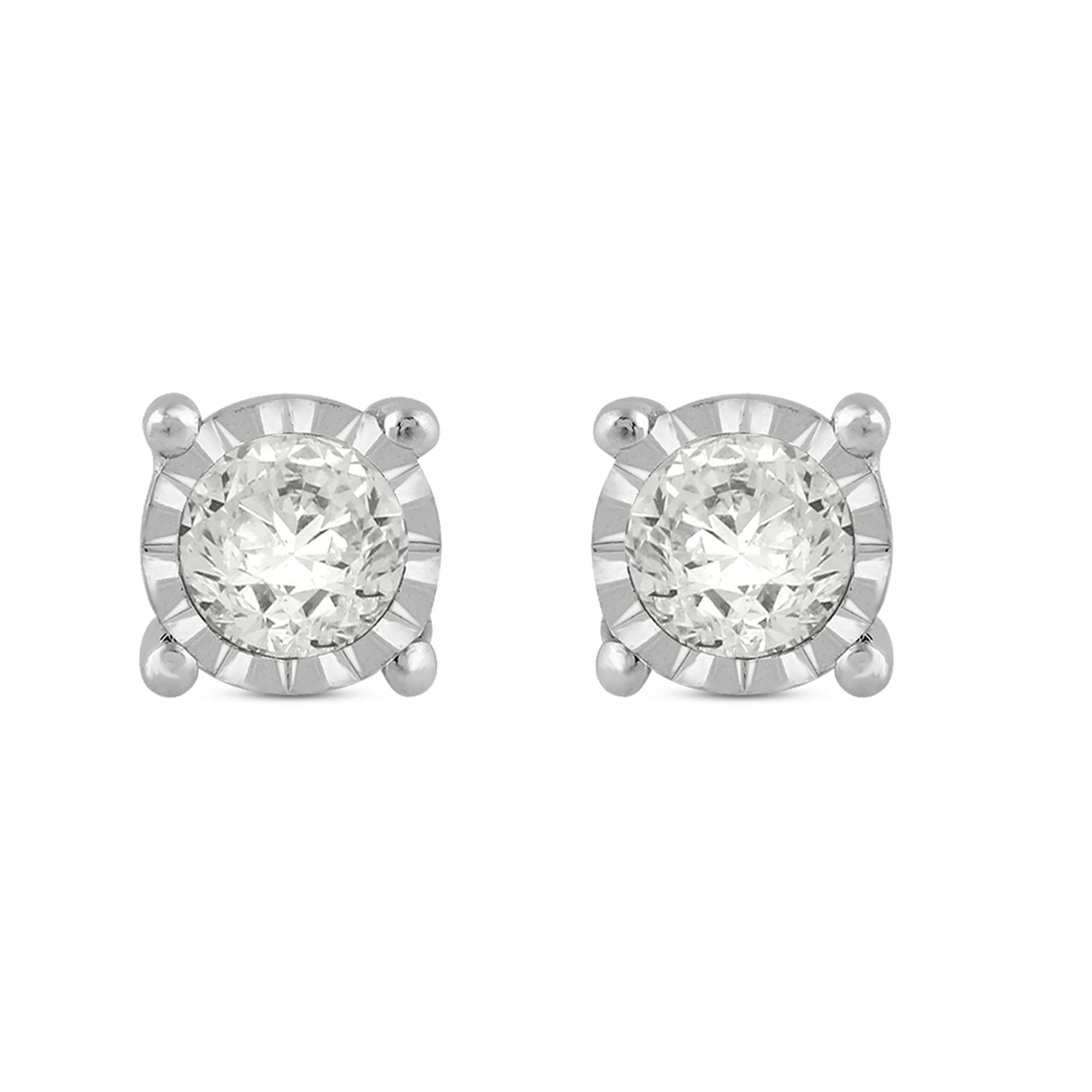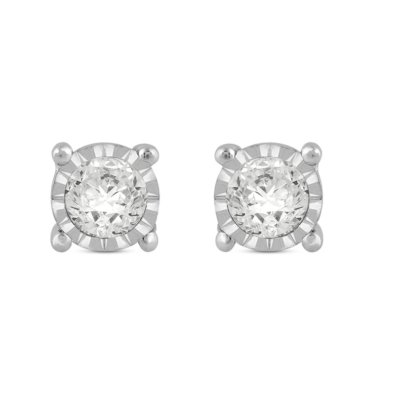 • 10K White Gold with 1/4 Cttw Natural White Round Shape Diamond Stud Earrings