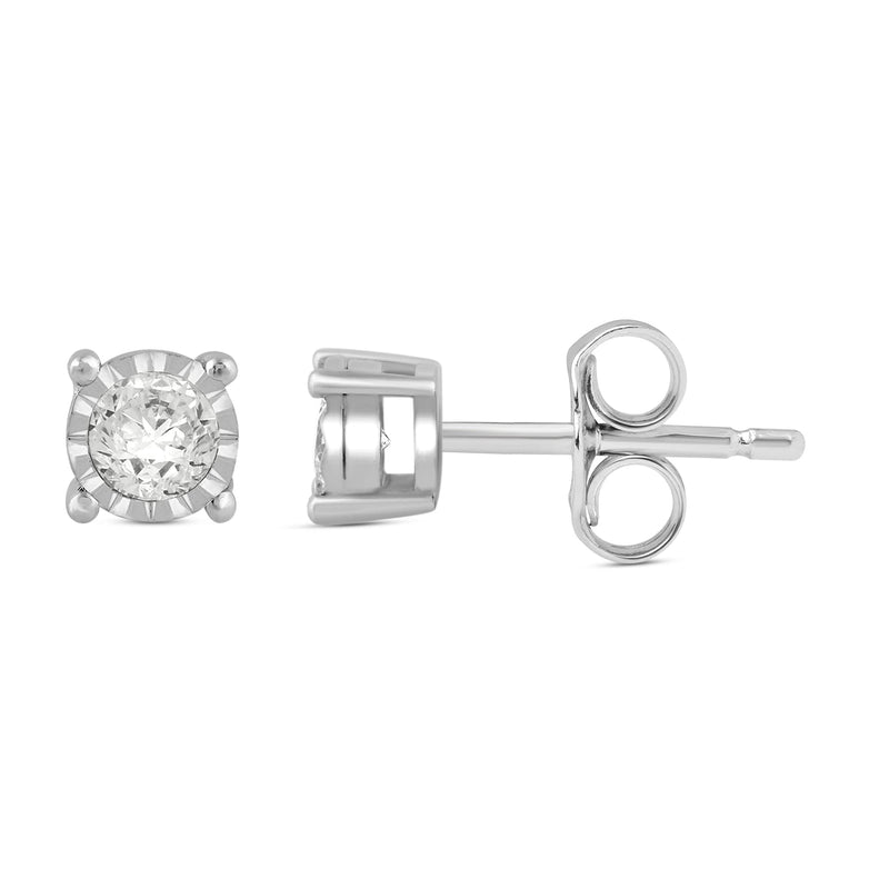 Jewelili 10K White Gold with 1/4 CTTW Natural White Round Shape Diamonds Stud Earrings