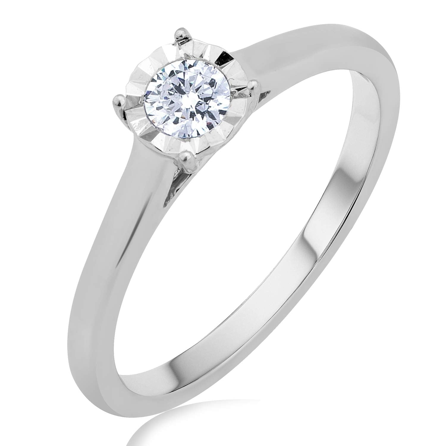 Jewelili 10K White Gold With 1/5 CTTW Natural White Diamond Solitaire Ring