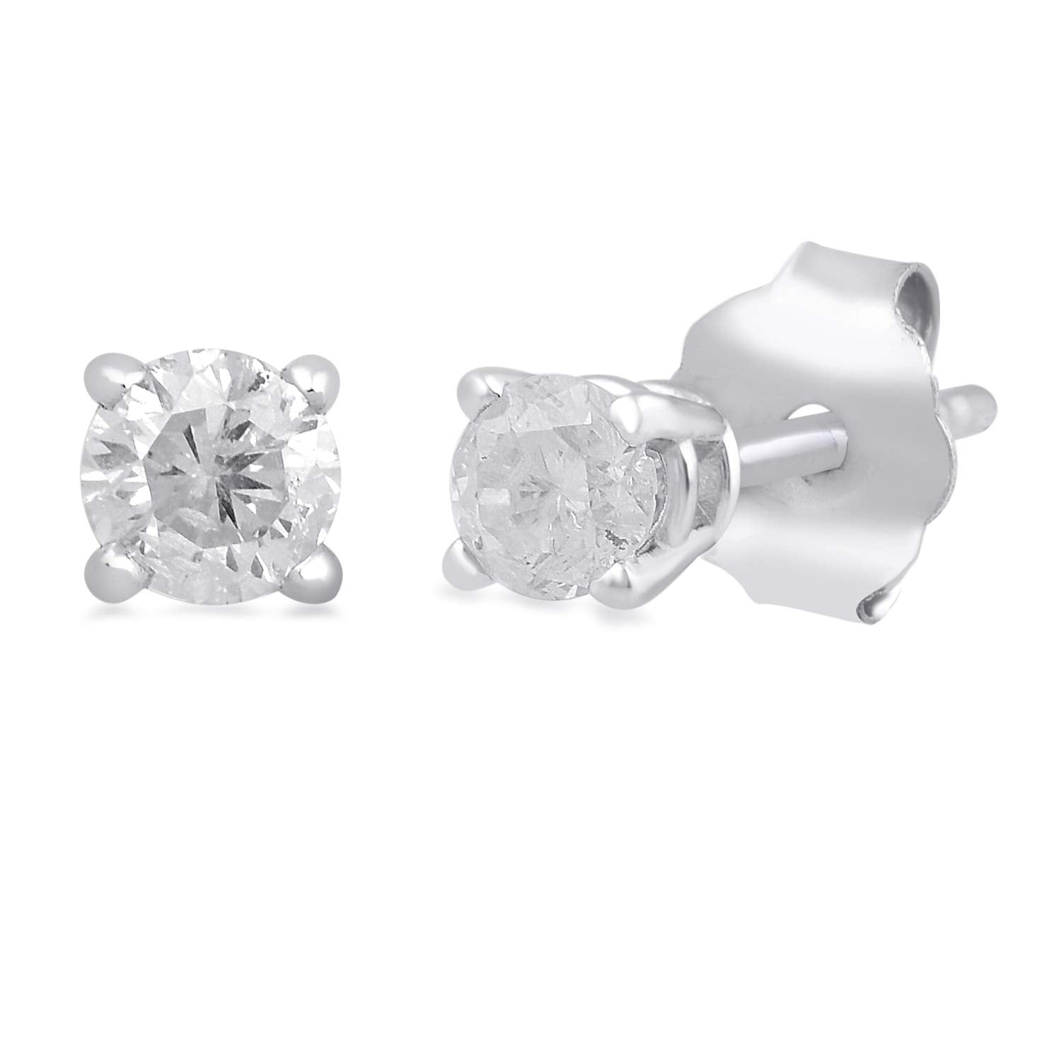 Jewelili 10K White Gold With 1/5 CTTW Natural White Diamond Solitaire Stud Earrings