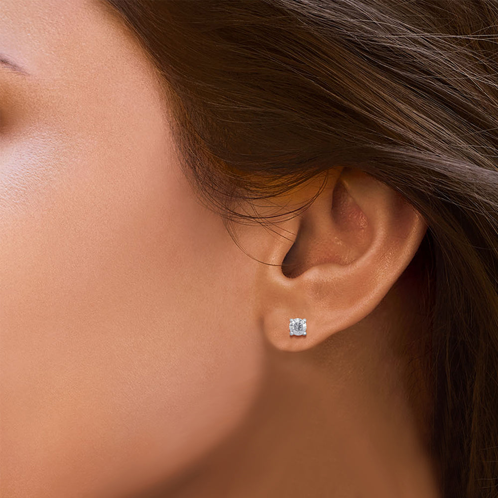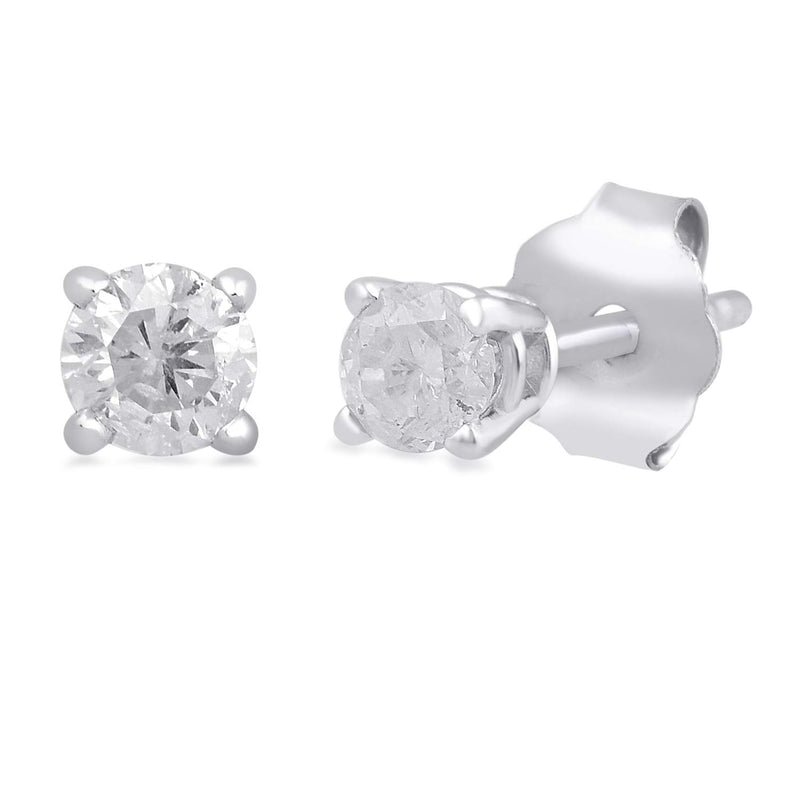 • 10K White Gold With 1/5 Cttw Natural White Diamond Solitaire Stud Earrings