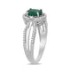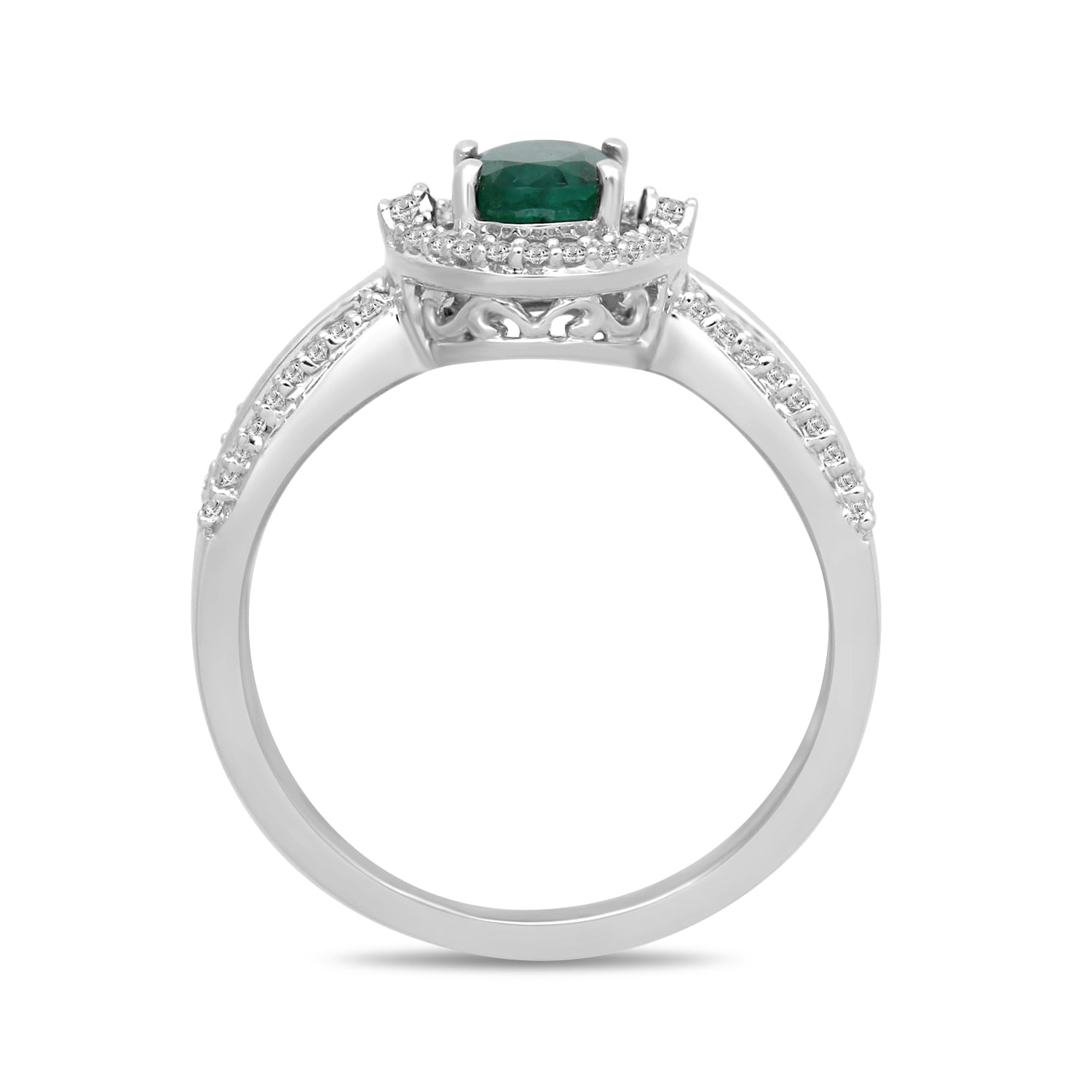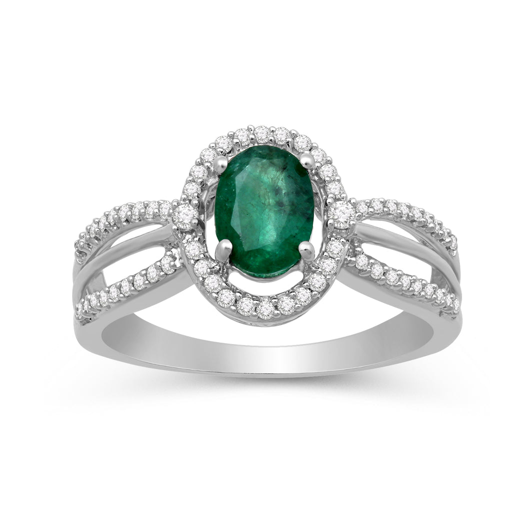 Jewelili 10K White Gold With 1/5 CTTW Natural White Round Diamonds and Oval Shape Emerald Ring