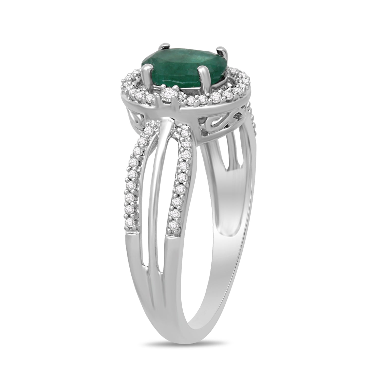 • 10K White Gold With 1/5 Cttw Natural White Round Diamonds and Oval Shape Emerald Ring