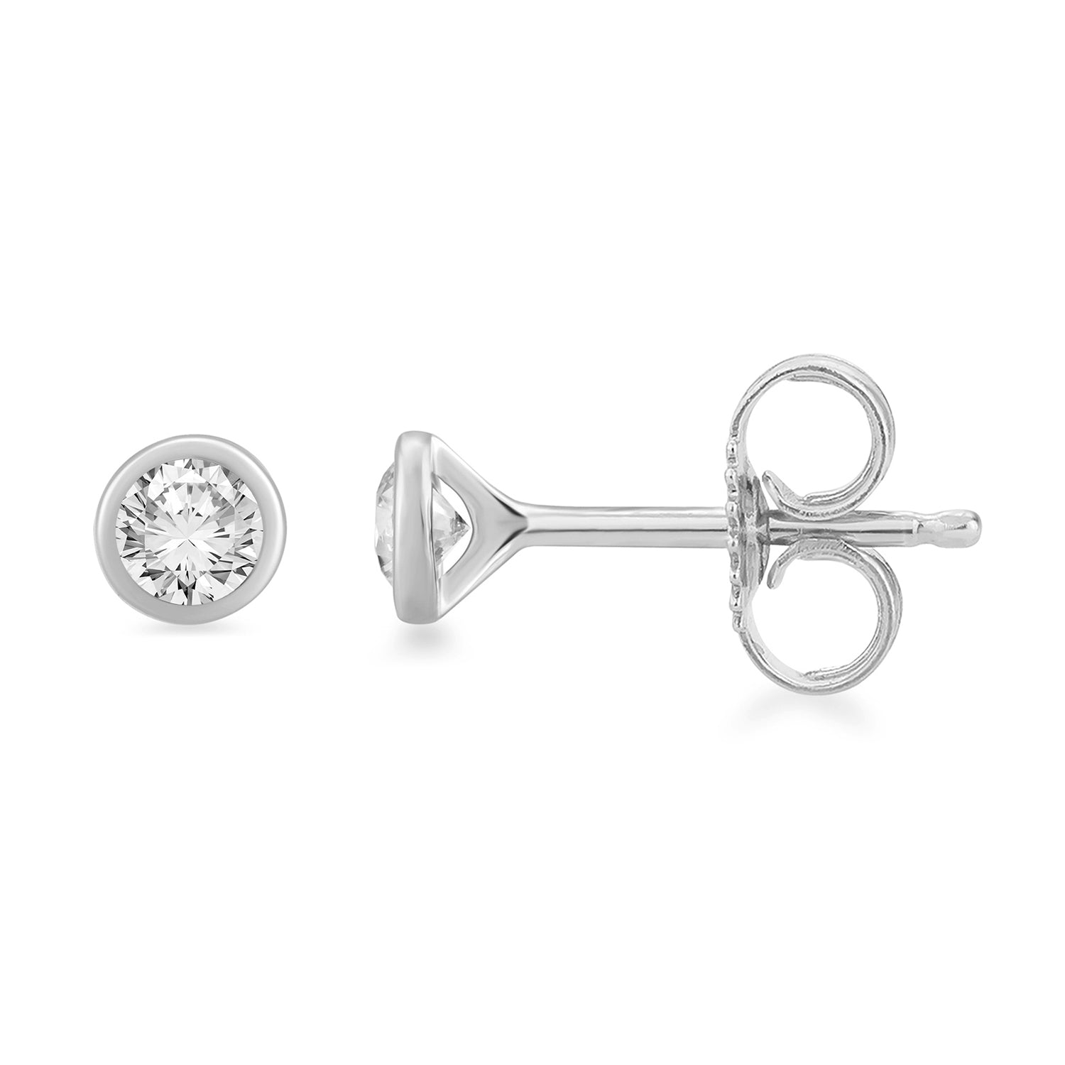 • 10K White Gold With 1/6 Cttw Natural White Round Diamonds Stud Earrings