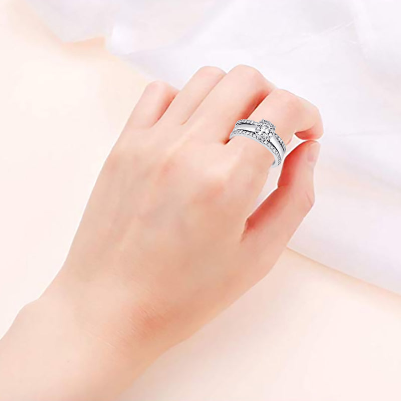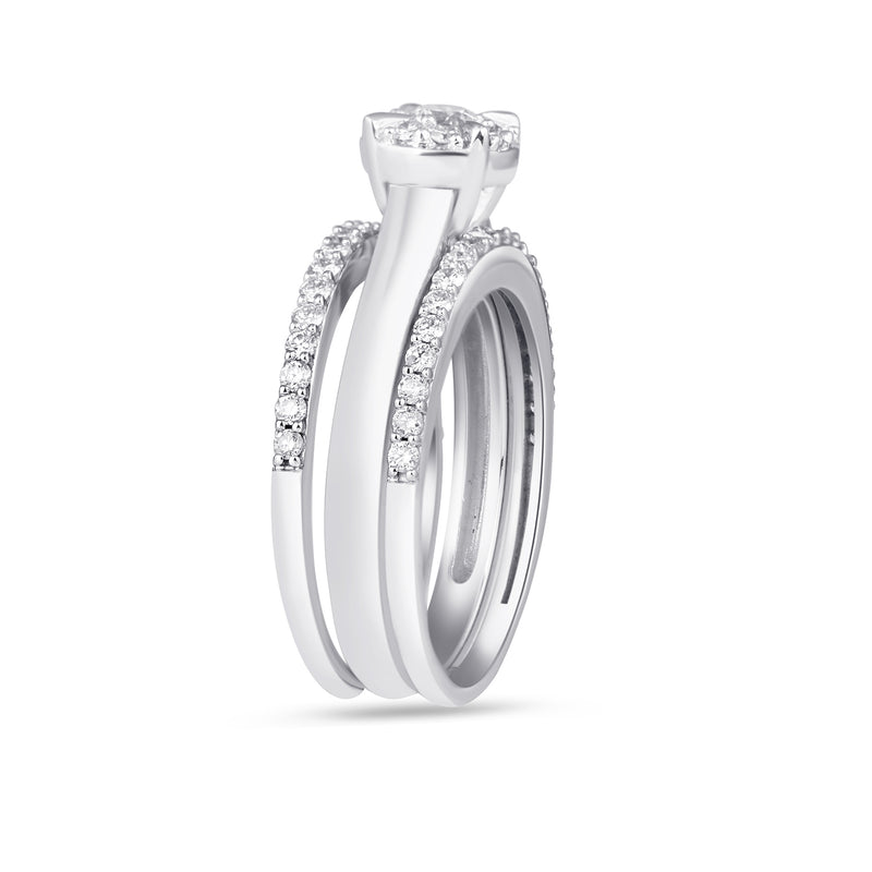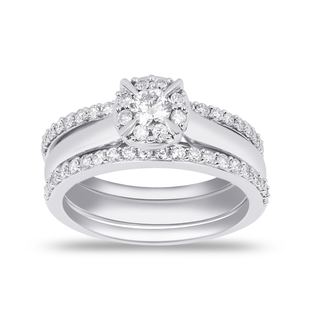 • 10K White Gold With 3/4Cttw Natural White Round Diamonds Bridal Set