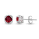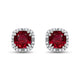 • Load image into Gallery viewer, Jewelili 10K White Gold with Cushion Cut Created Ruby and 1/10 CTTW Round Natural White Diamonds Halo Stud Earrings
