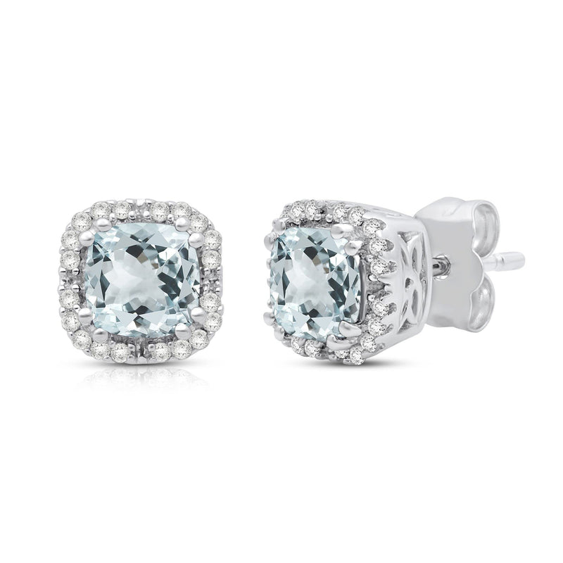 • Load image into Gallery viewer, Jewelili Stud Earrings with Aquamarine and Natural White Round Diamonds in 10K White Gold 1/10 CTTW View 1