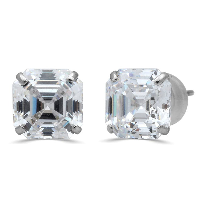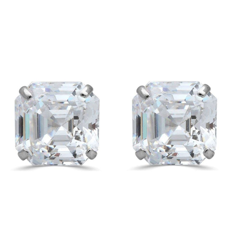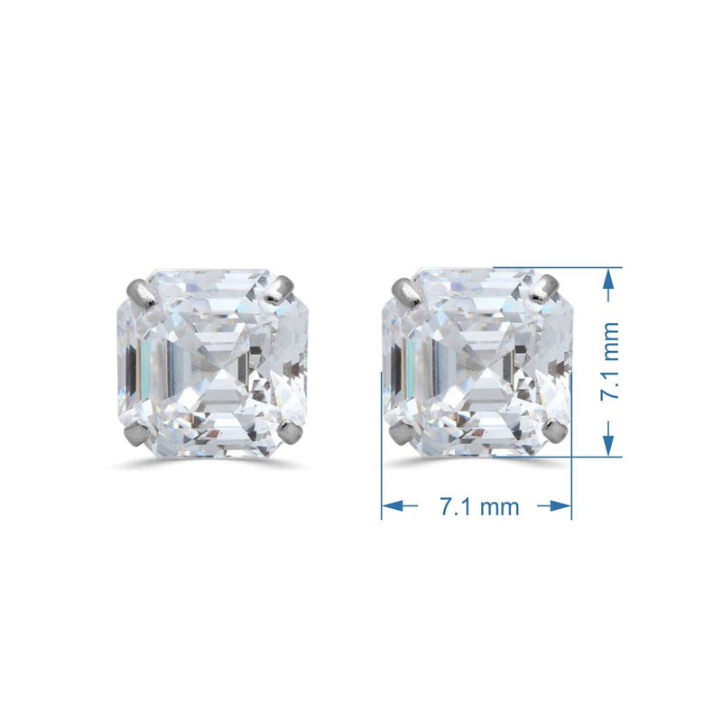 Details: 10K White Gold With Asscher Cut Cubic Zirconia Stud Earrings