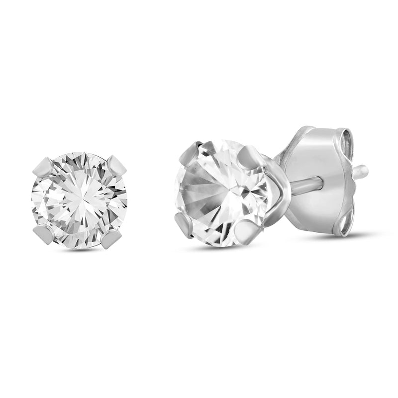 • 10K White Gold With Created White Sapphire Stud Earrings