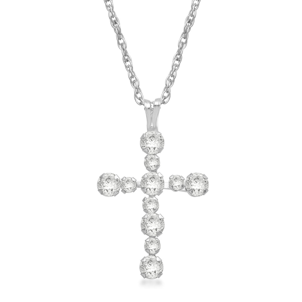 Details: 10K White Gold With Cubic Zirconia Cross Pendant Necklace