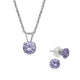 • 10K White Gold With Lavender Cubic Zirconia Stud Earrings and Pendant Necklace Jewelry Set