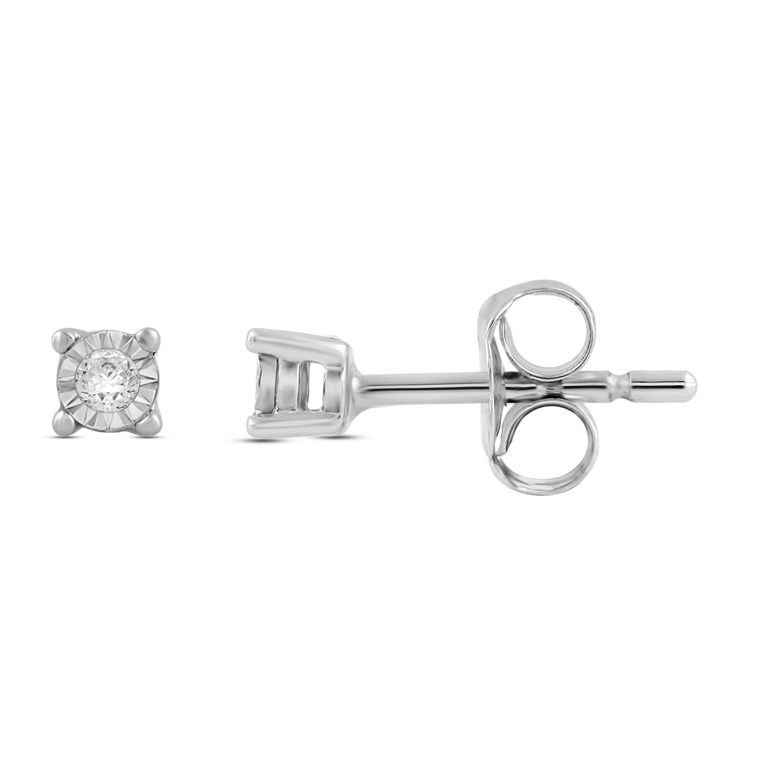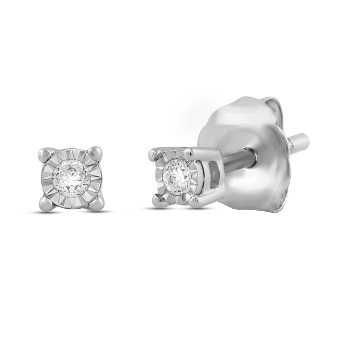 Jewelili 10K White Gold with Natural White Round Shape Diamonds Stud Earrings
