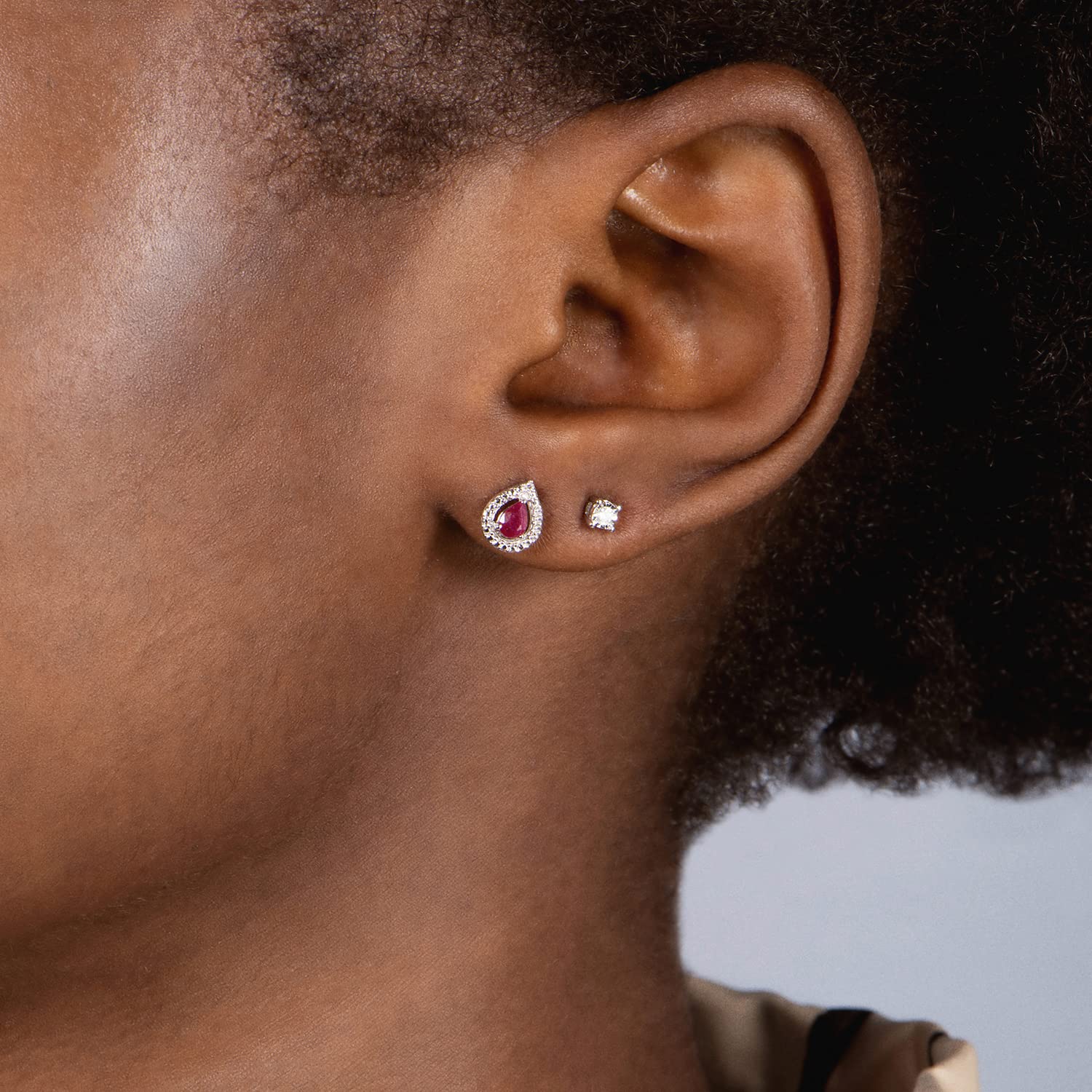 • Load image into Gallery viewer, Jewelili Stud Earrings with Natural White Round Shape Diamonds in 10K White Gold view 4