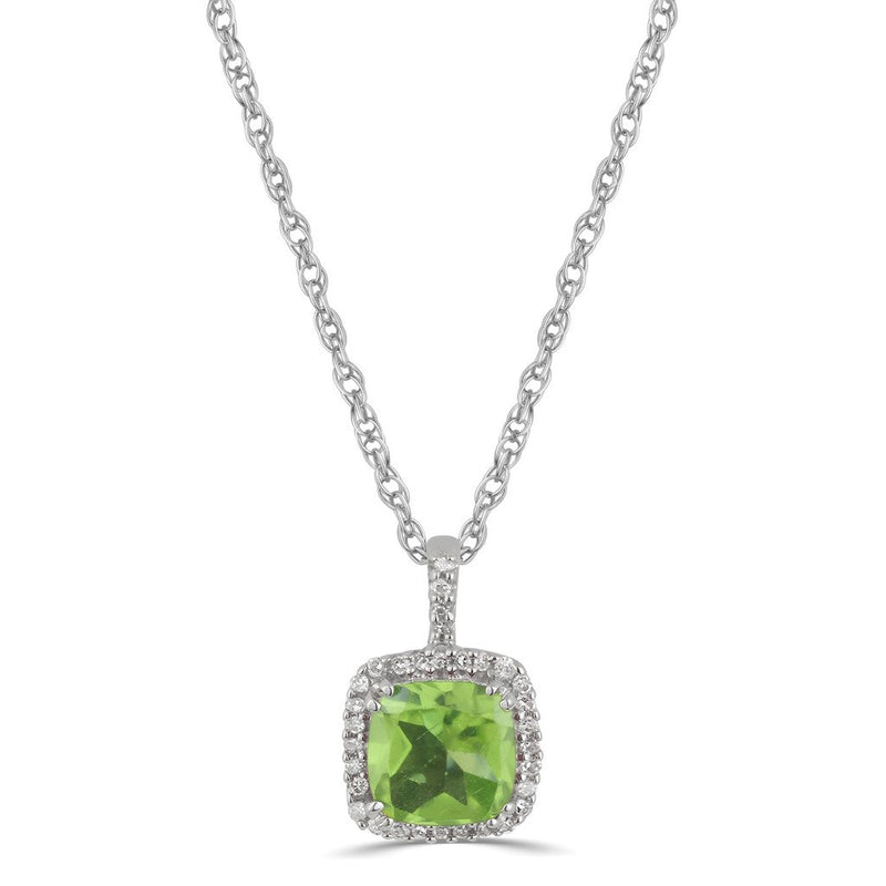Details: 10K White Gold With Peridot and Natural White Diamonds Halo Pendant Necklace