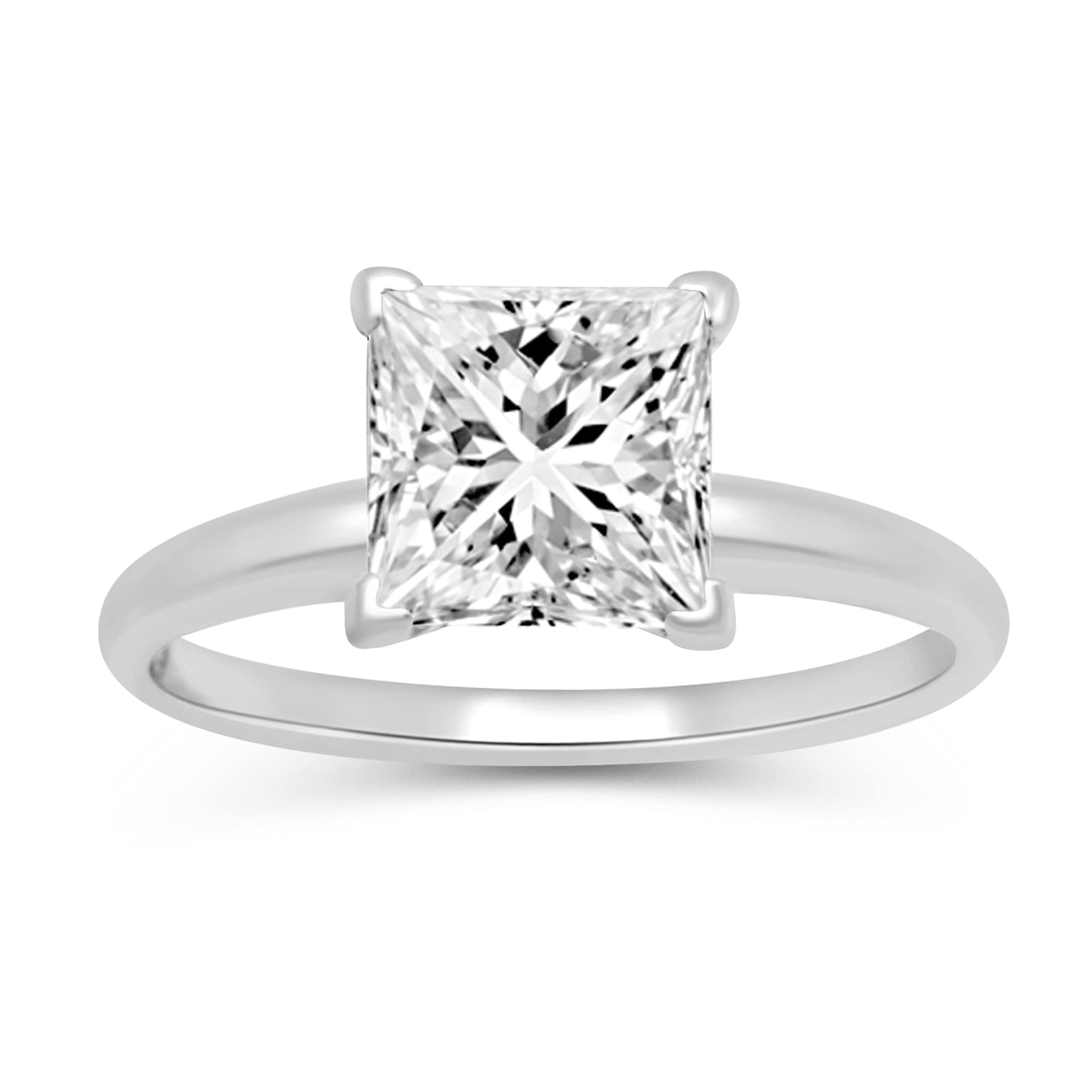 • 10K White Gold with Princess Cut Cubic Zirconia Solitaire Ring