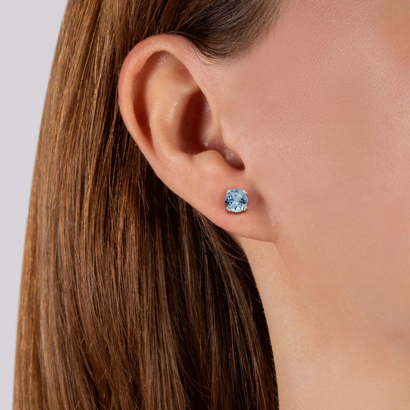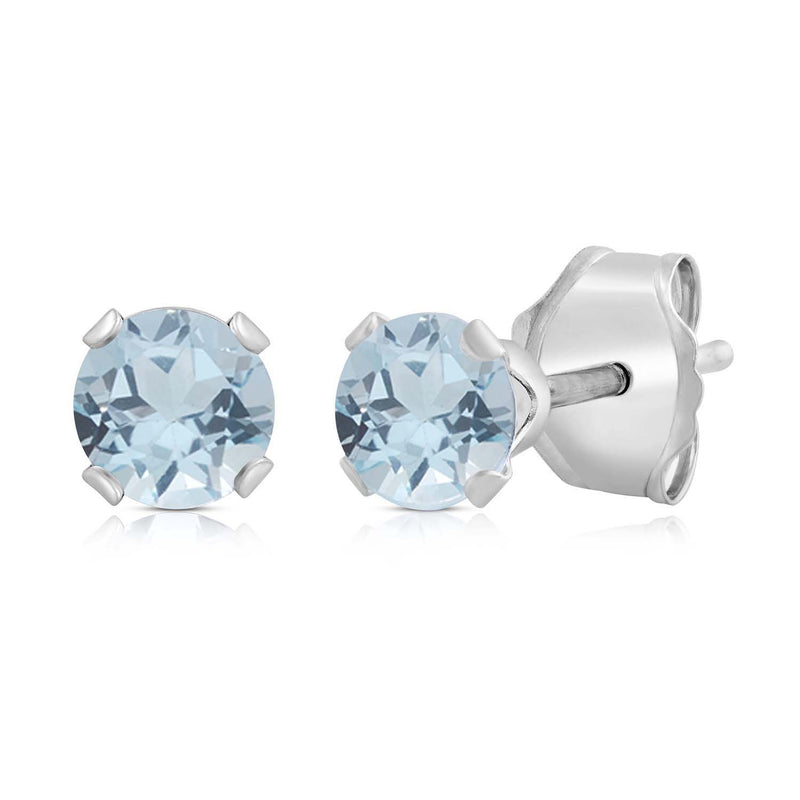 • 10K White Gold with Round Shape Aquamarine Stud Earrings